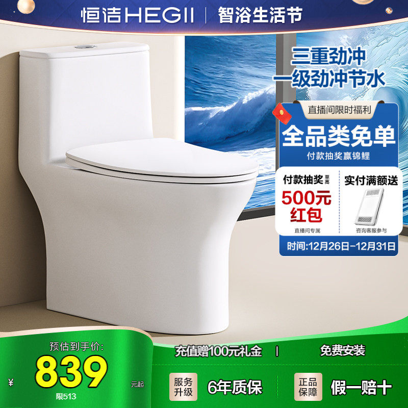 HEGII/恒洁小户型虹吸式卫生间防臭家用一级节水坐便器小激浪马桶