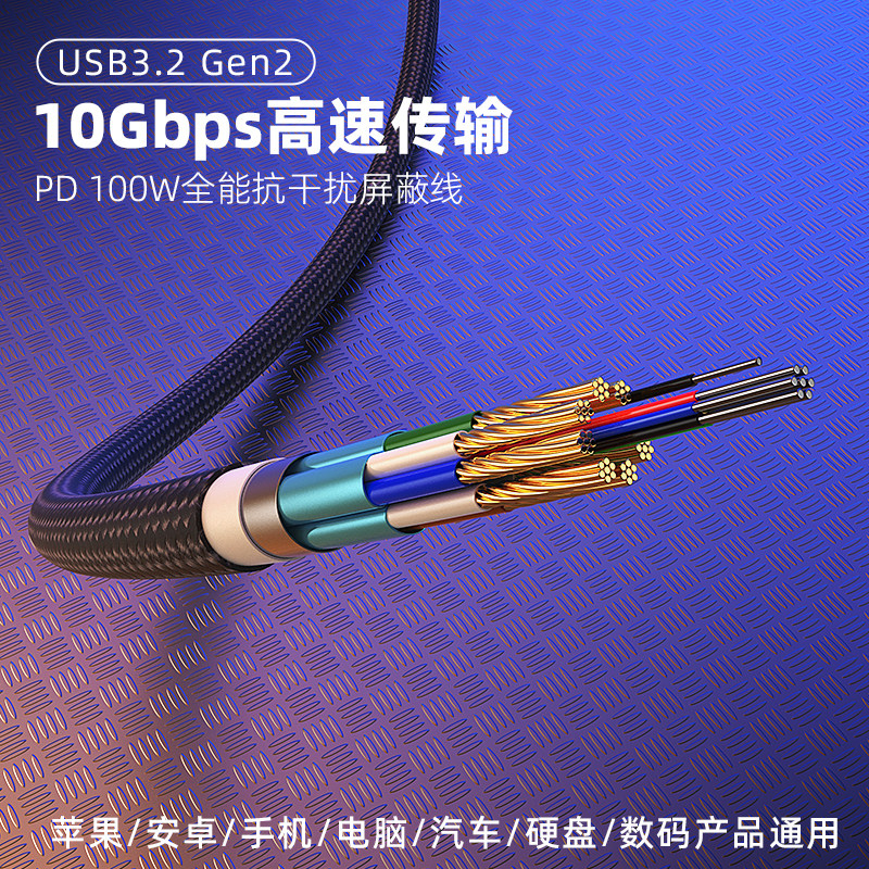 USB3.0转typec数据线固态移动硬盘盒笔记本电脑平板手机快速3.2Gen2充电线10Gbps高速传输适用16苹果15刷机17
