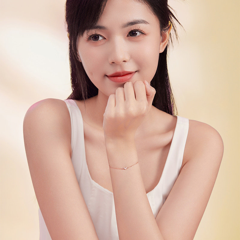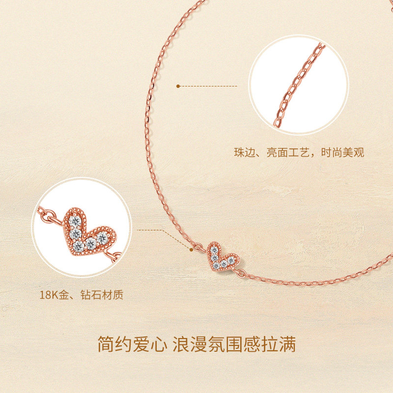 潮宏基至简红18K金钻石手链手饰玫瑰金彩金高级感送女友礼物
