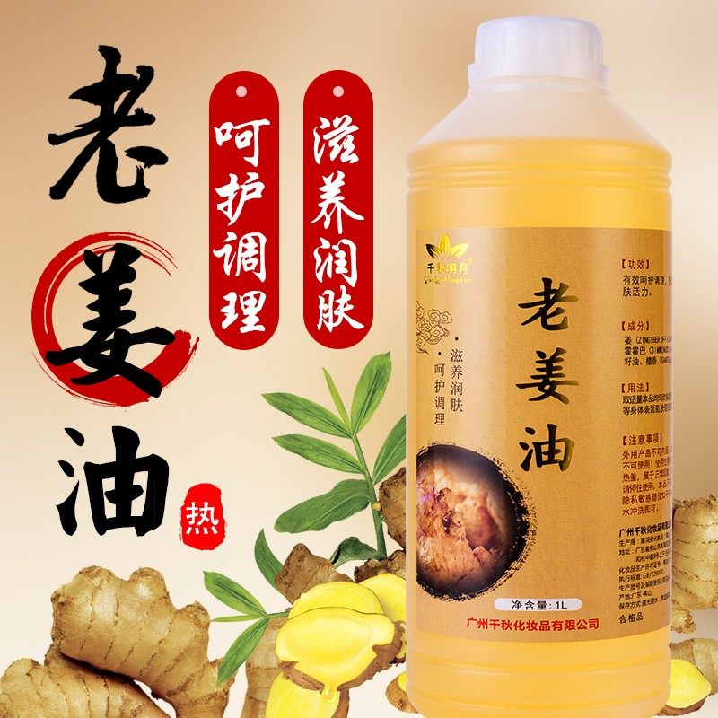 老姜油按摩精油美容院刮痧油开背全身通经络发热推背艾草生姜大瓶