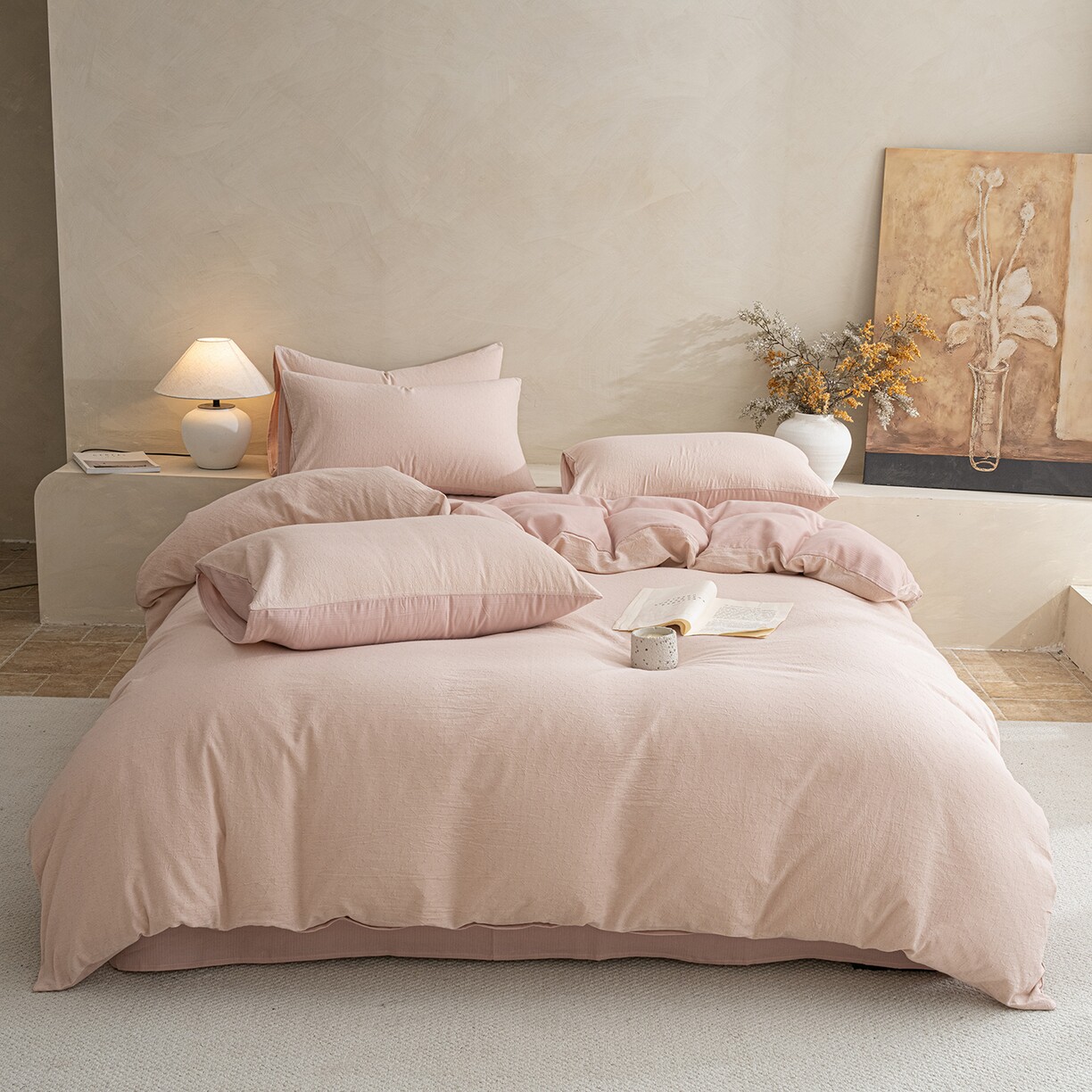 A类水洗棉双层纱四件套被罩非全棉纯棉床单人学生宿舍被套三件套