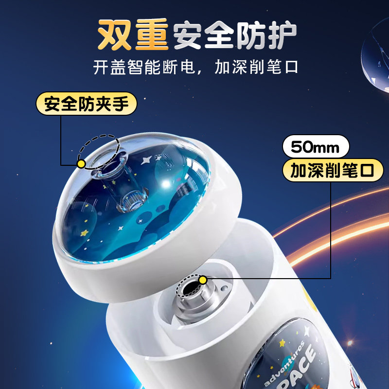 晨光大口径全自动削笔器银河小旋星小学生专用电动充电转笔刀男孩女孩进削笔机幼儿园儿童粗杆三角铅笔卷笔刀