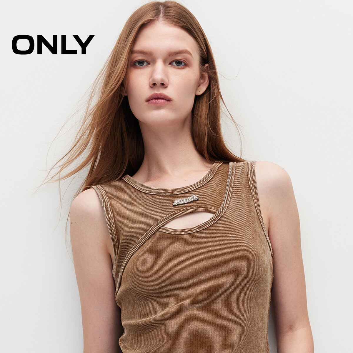 ONLY2026夏季新款上衣性感修身纯色圆领复古背心做旧打底T恤女