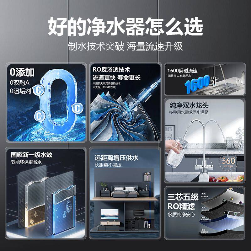 净水器家用ro反渗透净水机厨房自来水净化器厨下式纯水除垢直饮机