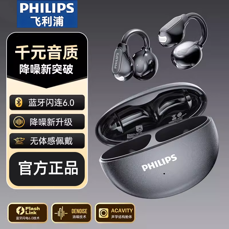 飞利浦TAQ3020耳夹式耳机无线通话降运动跑步用佩戴舒适蓝牙6.0