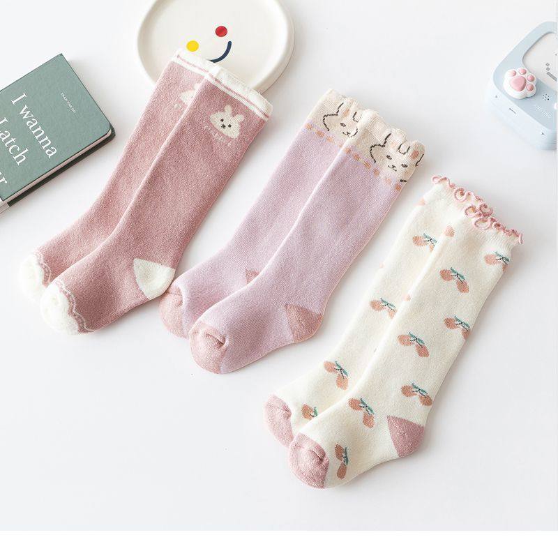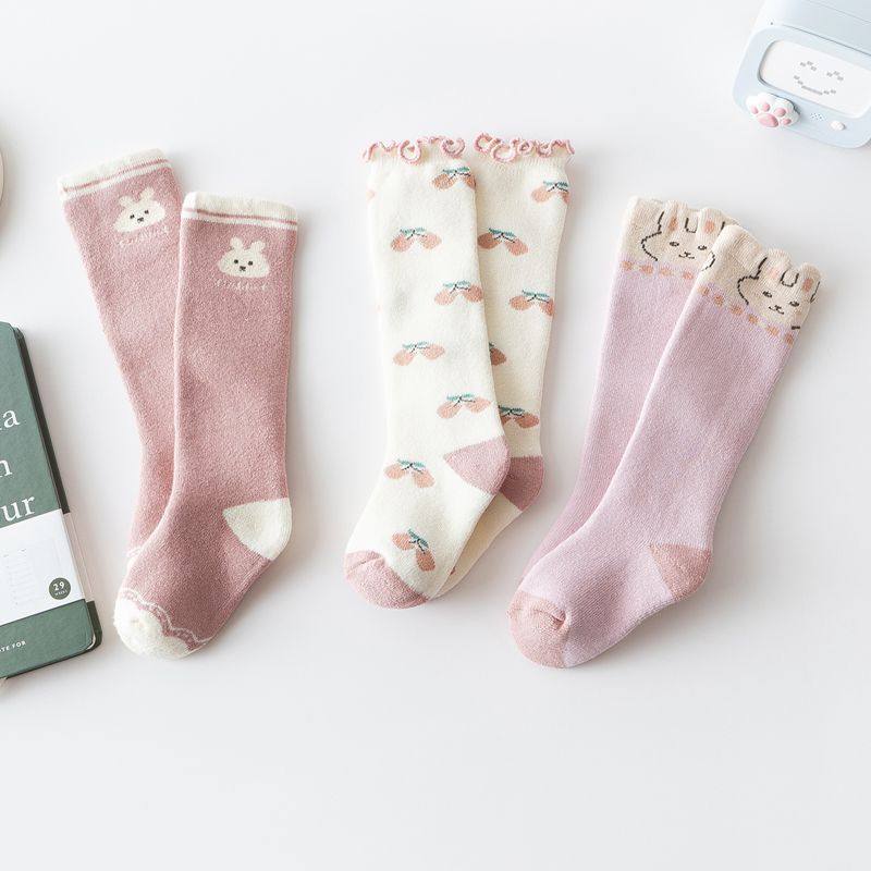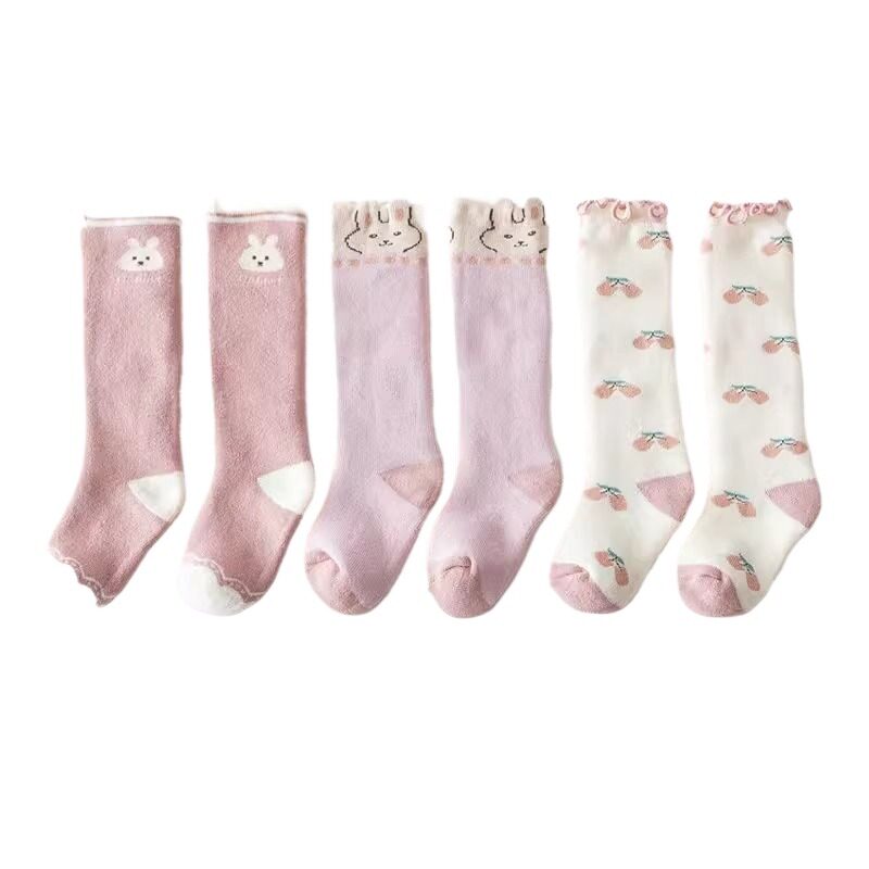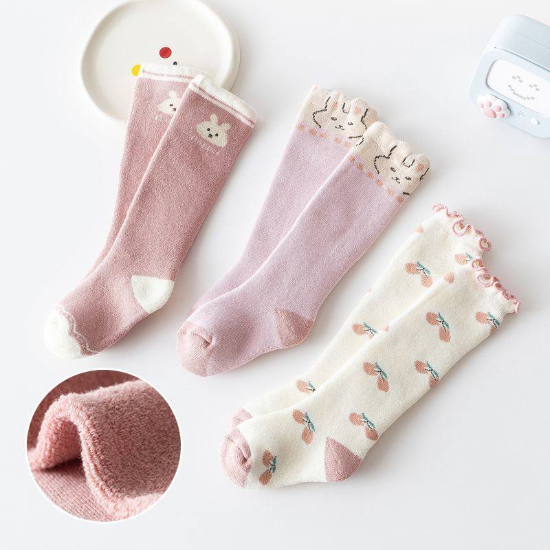 婴儿袜子秋冬长筒袜可爱小熊小腿袜加厚毛圈袜保暖儿童袜宝宝冬季