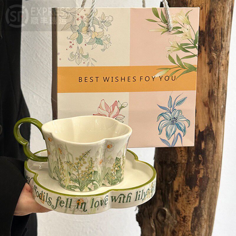 绿铃兰马克杯陶瓷咖啡杯碟套装礼盒装女生生日礼物中秋节日伴手礼