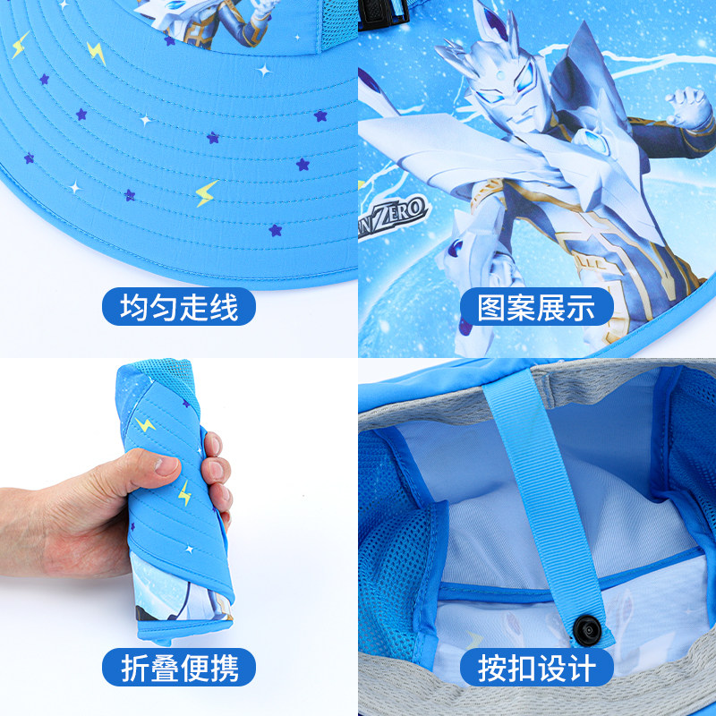 奥特曼儿童防晒帽沙滩夏季男宝宝遮阳帽太阳帽男童渔夫帽大帽檐夏