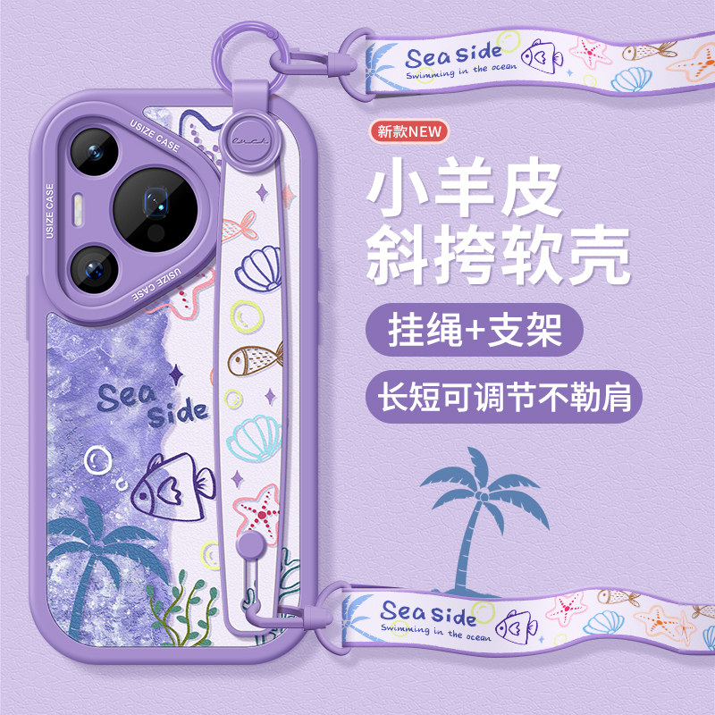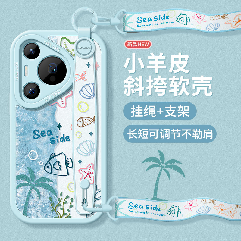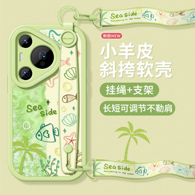 适用华为pura70pro手机壳腕带p60保护套挂绳p40女款支架p50e硅胶防摔p30/20新款夏威夷小鱼huawei全包软外壳