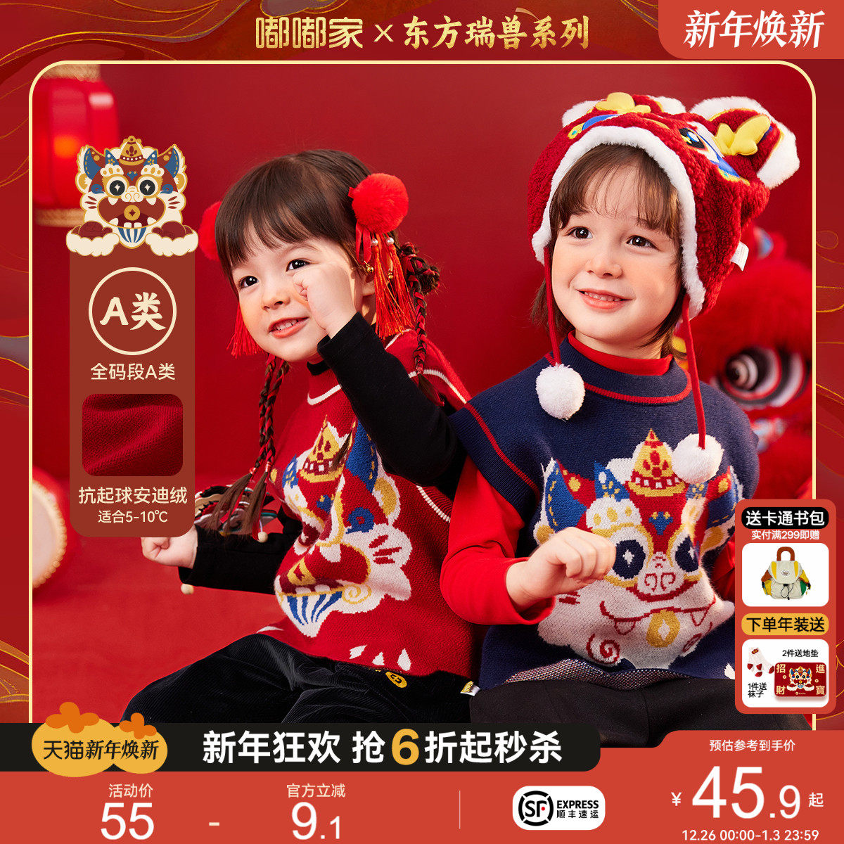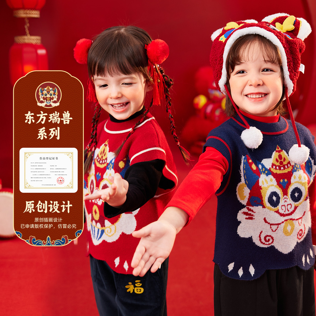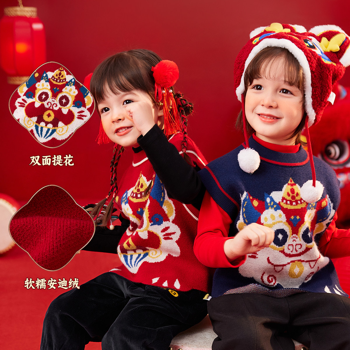 嘟嘟家儿童红色喜庆唐装冬季小童针织马甲男童拜年服女童过年衣服
