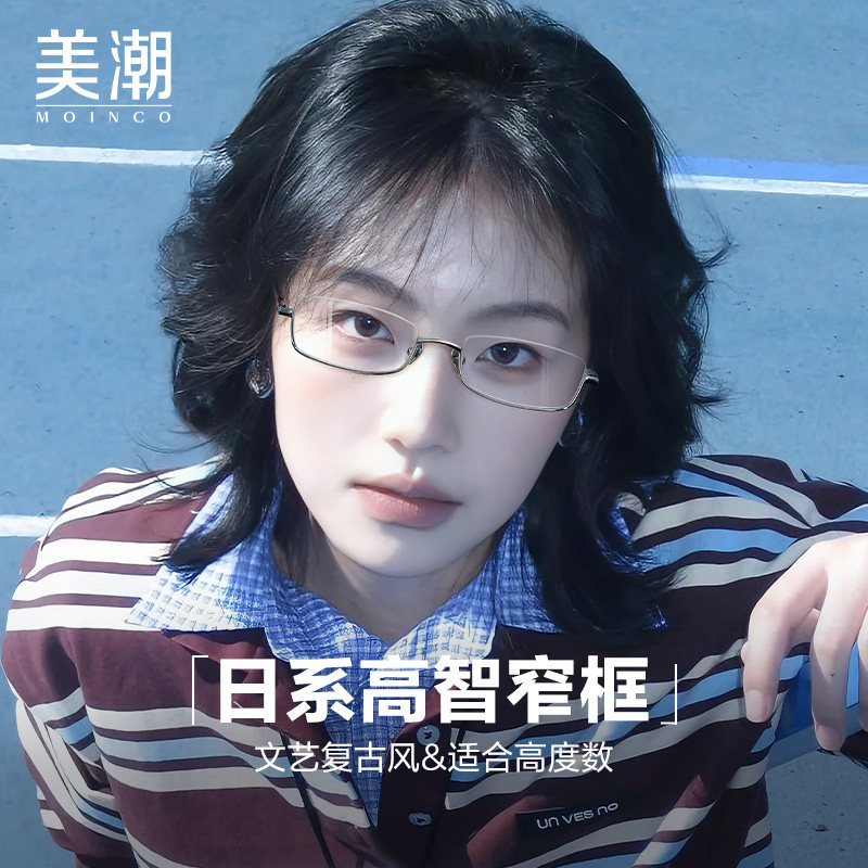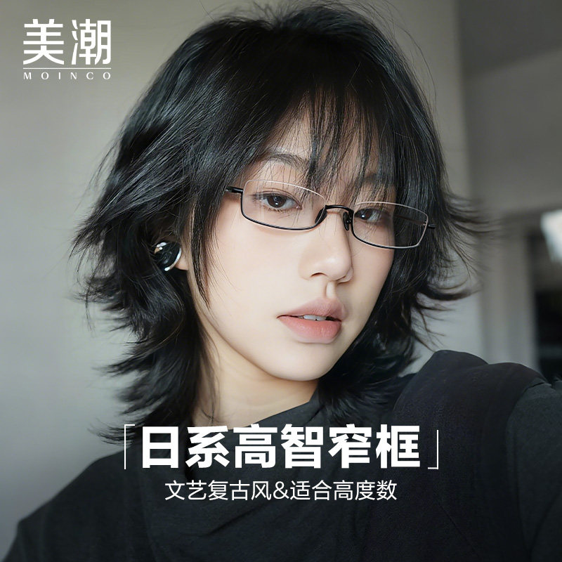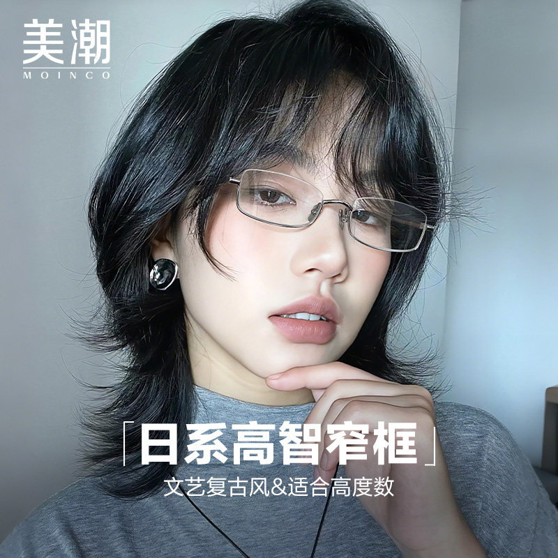 日系窄框眼镜架女可配散光高度数近视眼镜高级感显脸小素颜下半框