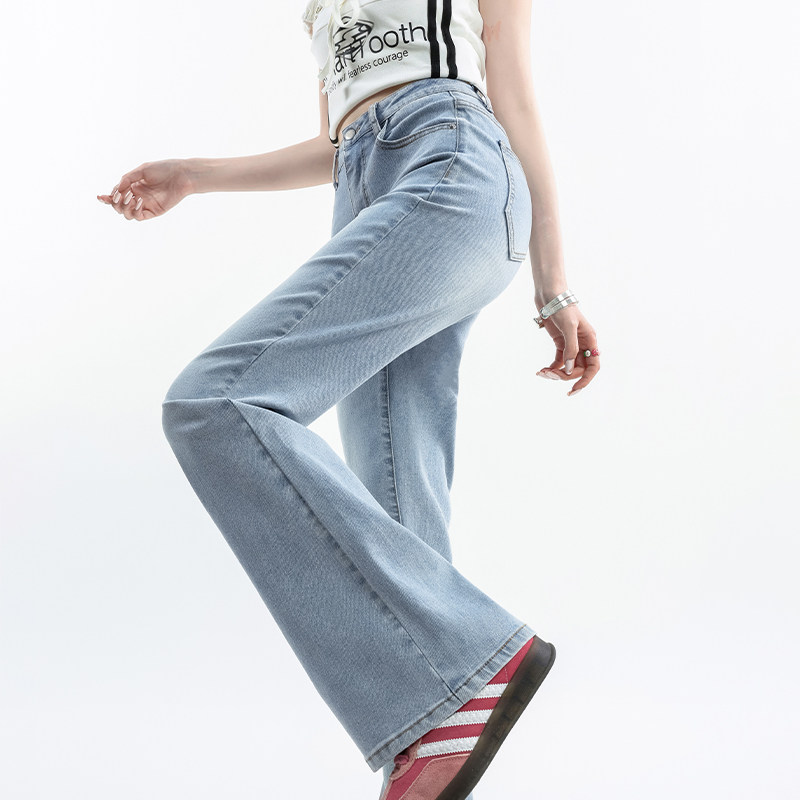 四面弹丹宁色牛仔阔腿裤25年新款宽松显瘦牛仔长裤89173