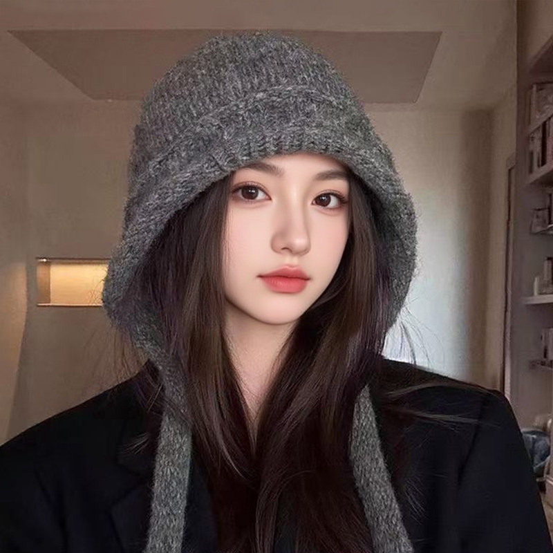 围巾帽子手套一体女连帽冬季帽可爱保暖围脖毛绒冬天三件套厚防寒