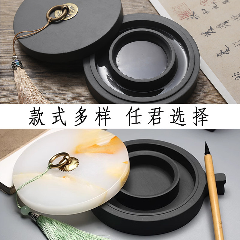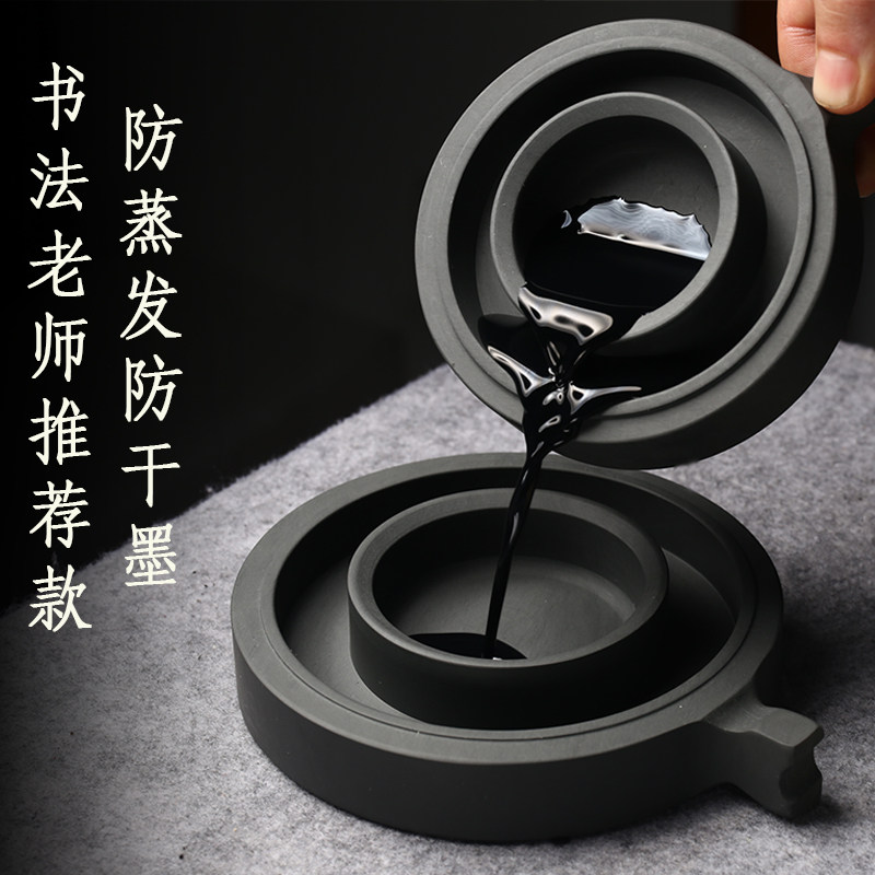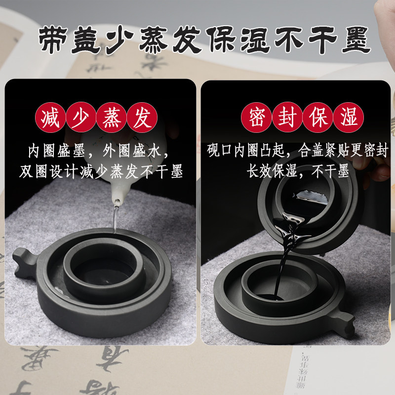 带盖双圈保湿防蒸发不干墨墨水砚台书法专用
