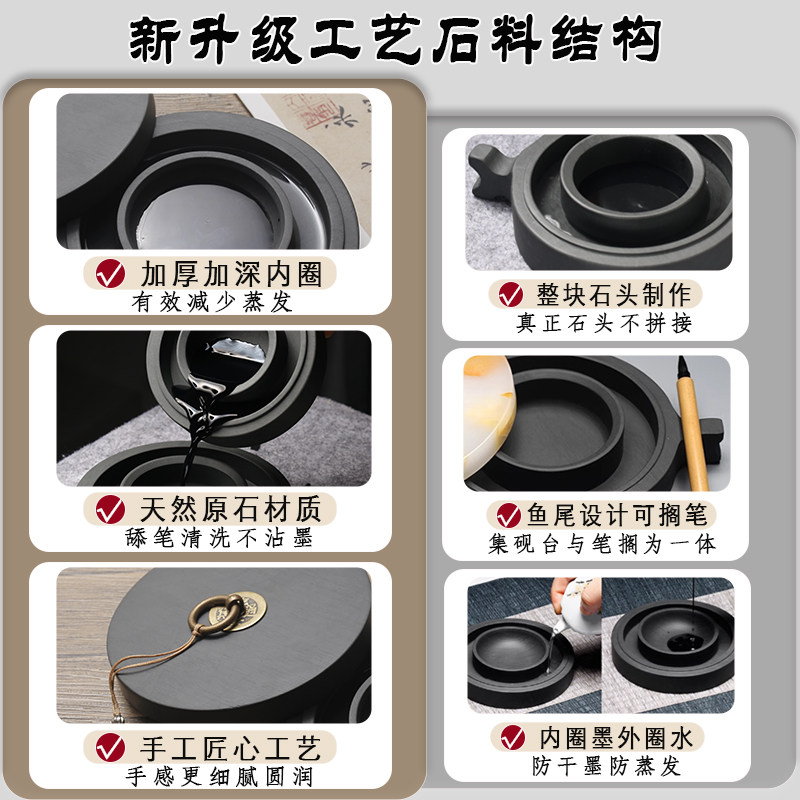 安徽火锅砚台歙砚书法专用多功能天然原石头带盖防蒸发不干墨初学者练毛笔字可磨墨研墨条墨池墨汁保湿墨盒