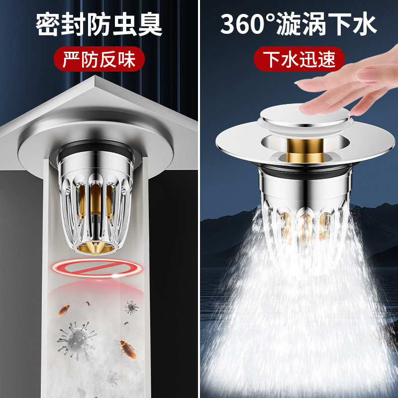 洗脸盆漏水塞子防臭虫器洗手盆面池按压式弹跳芯通用过滤下水配件