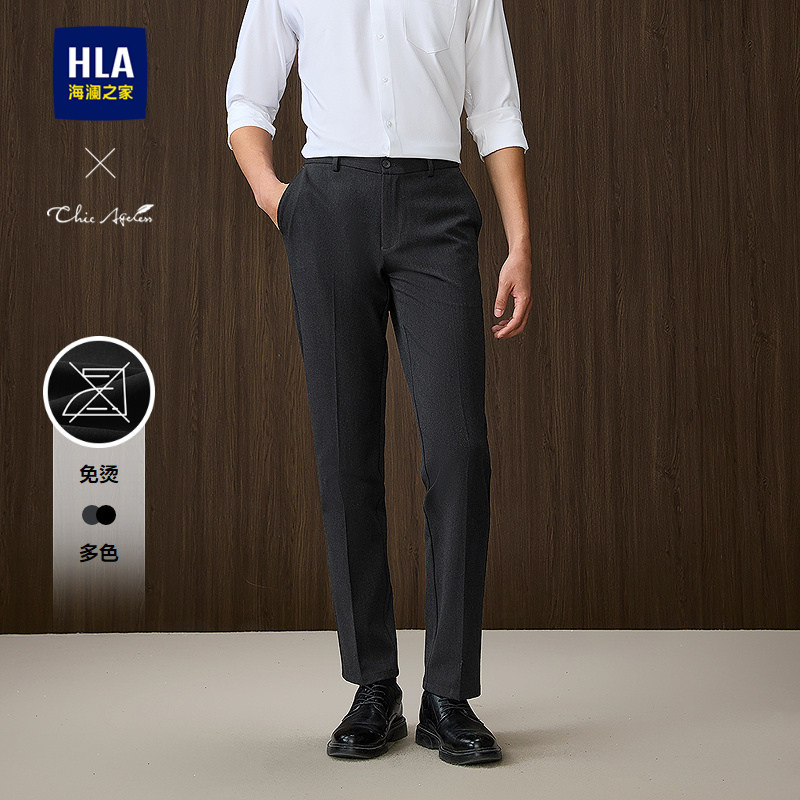 HLA/海澜之家轻商务通勤西裤春秋季新款大码通勤黑色弹力裤子男士