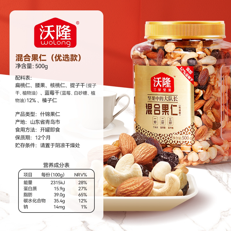 【达人专享】沃隆混合坚果500gx2罐优选款混合果仁果干腰果仁坚果