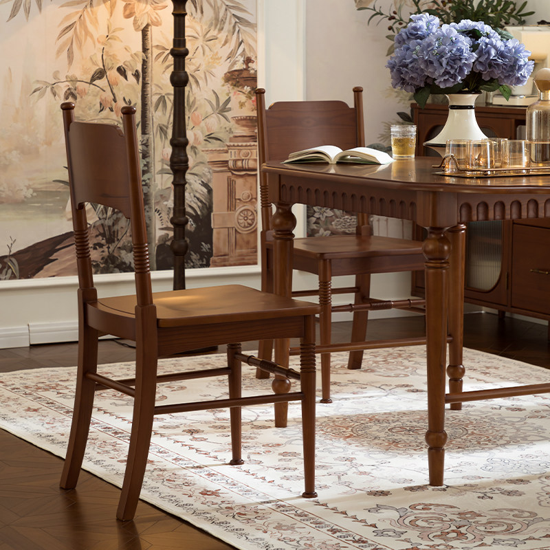 实木餐椅家用餐厅餐桌椅子客厅茶桌木头凳子靠背中古风洽谈书桌椅
