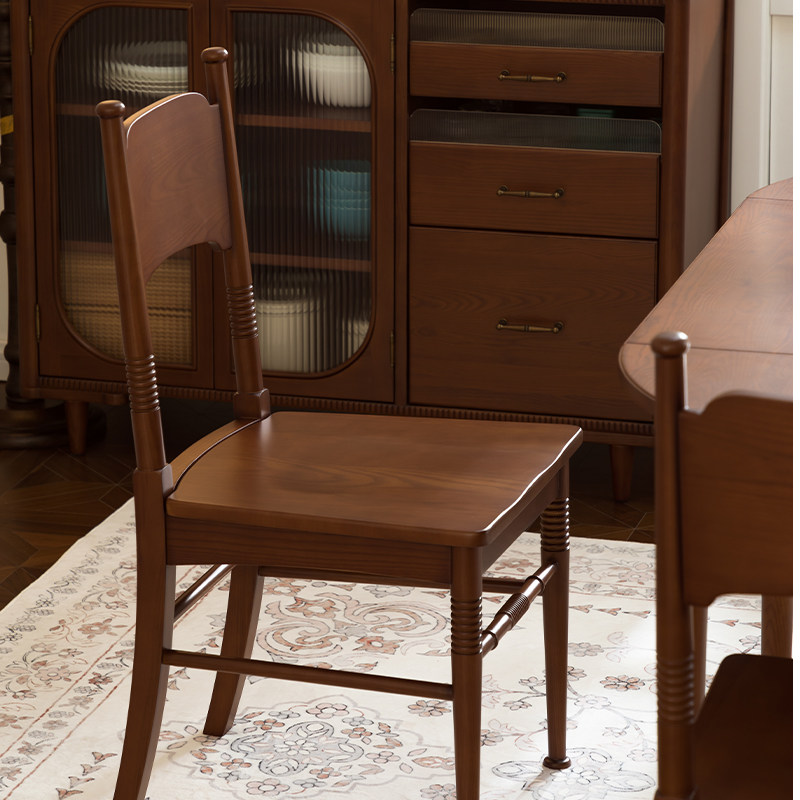 法式复古艾米餐椅全实木水性漆白蜡木书椅中古色小众高级实木