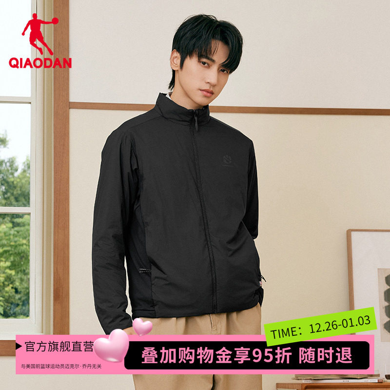 金标P棉|乔丹黑色棉服男士2025冬季新款防泼水立领保暖外套风衣