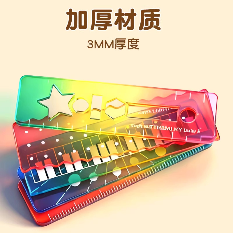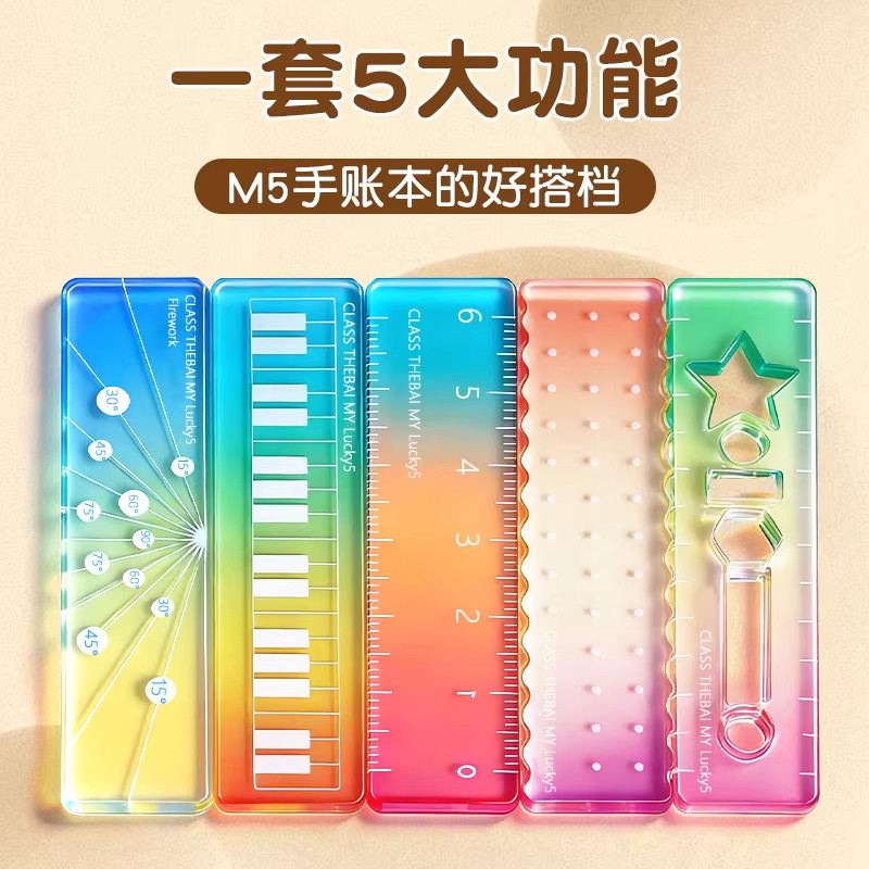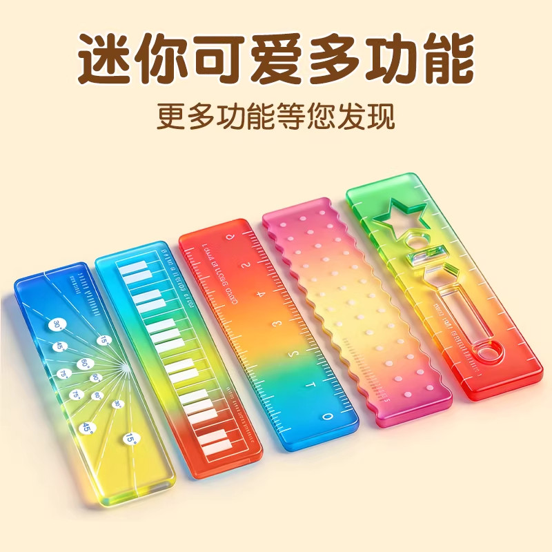 称心如意尺掌心尺糖果色m5手帐本迷你刻度尺透明波浪直尺子尺尺子手帐口袋便携渐变色多功能