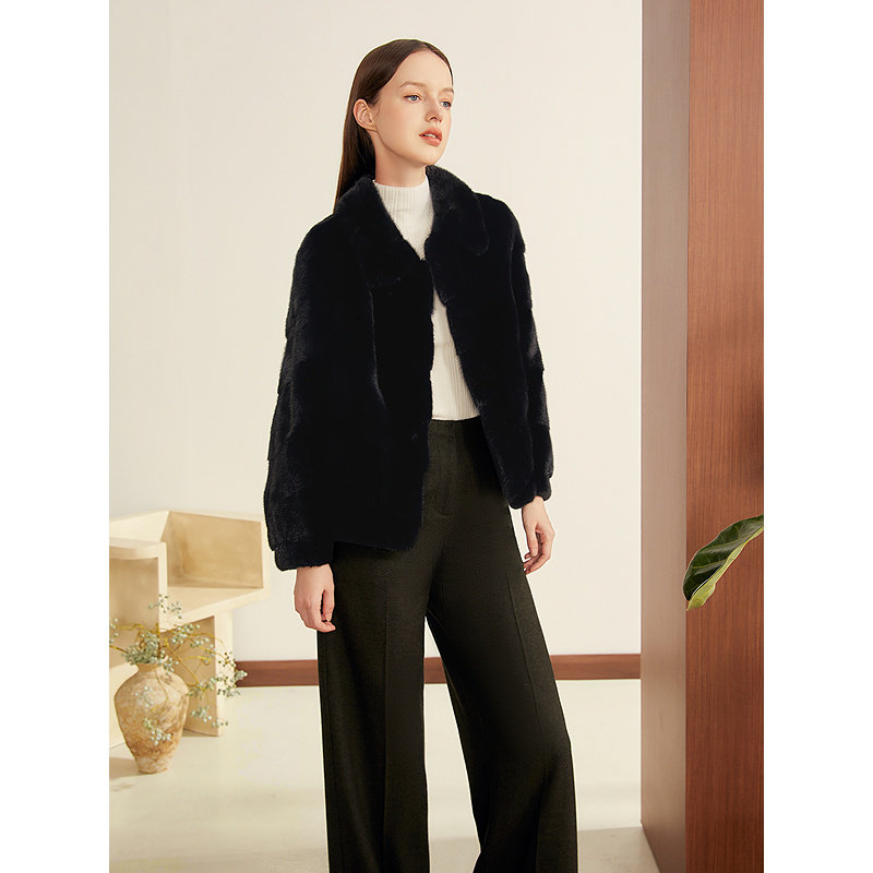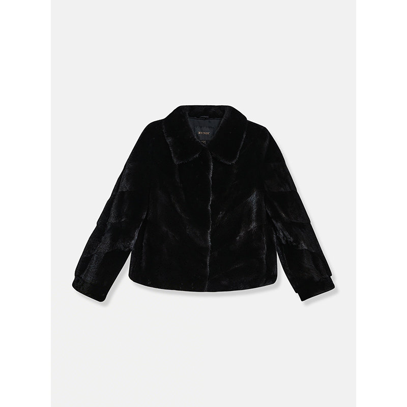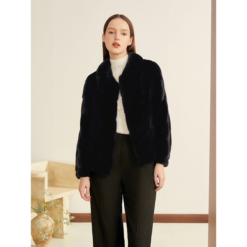 YINER音儿2025冬季新款法式优雅短款翻领进口水貂毛皮草外套