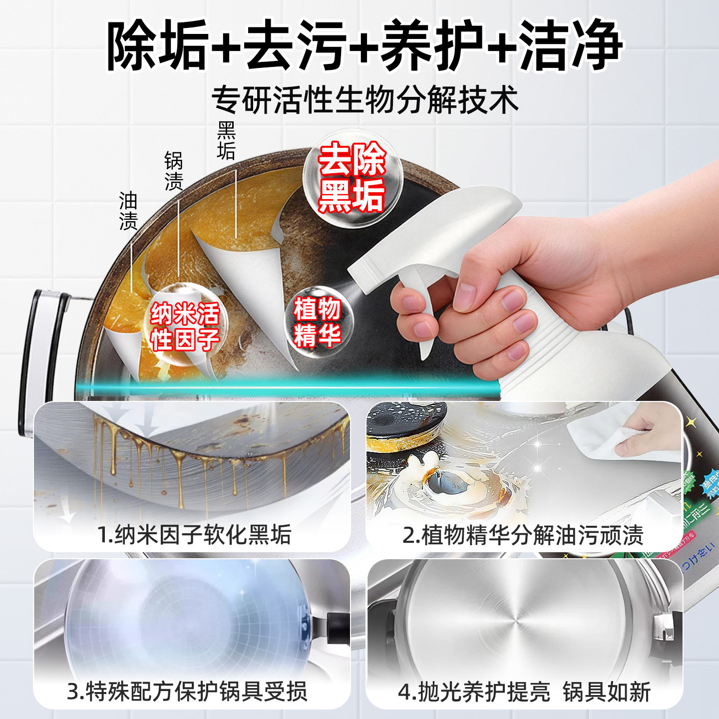 锅底黑垢清洁剂强力去重油污黑焦除垢厨房不锈钢铁清洗净神器去污