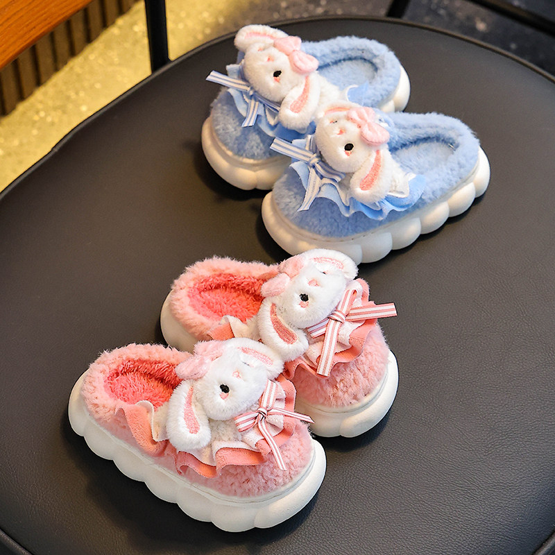 冬季儿童棉拖鞋女童室内保暖加绒可爱宝宝居家毛毛拖鞋男兔子防滑