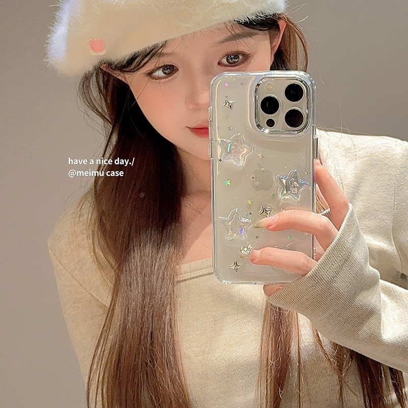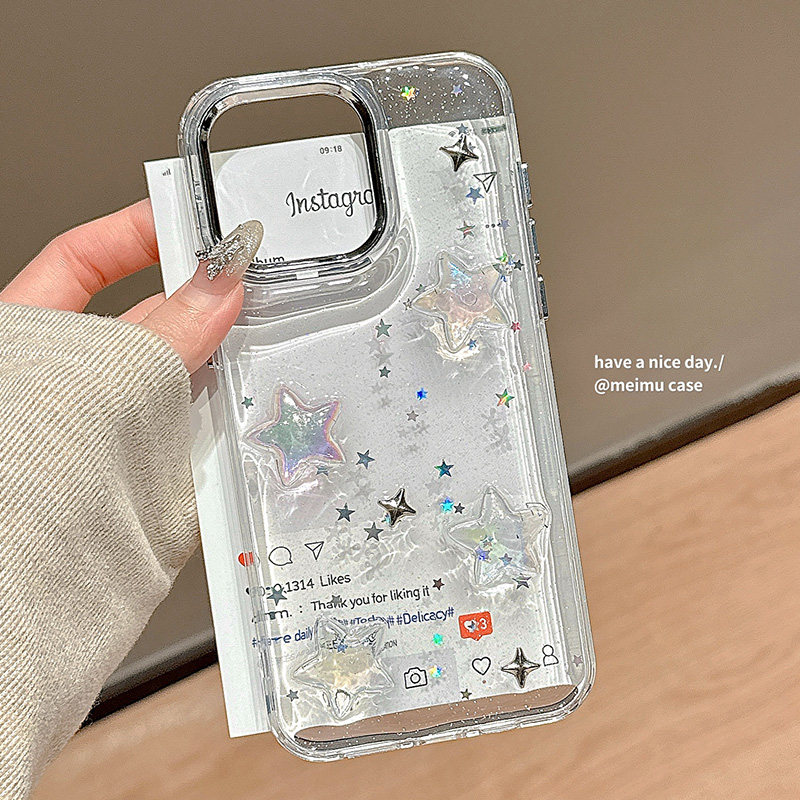 ins梦幻闪粉滴胶星星适用苹果17promax手机壳iPhone15新款16简约17pro少女13pro日韩风14pm高级感12全包透明