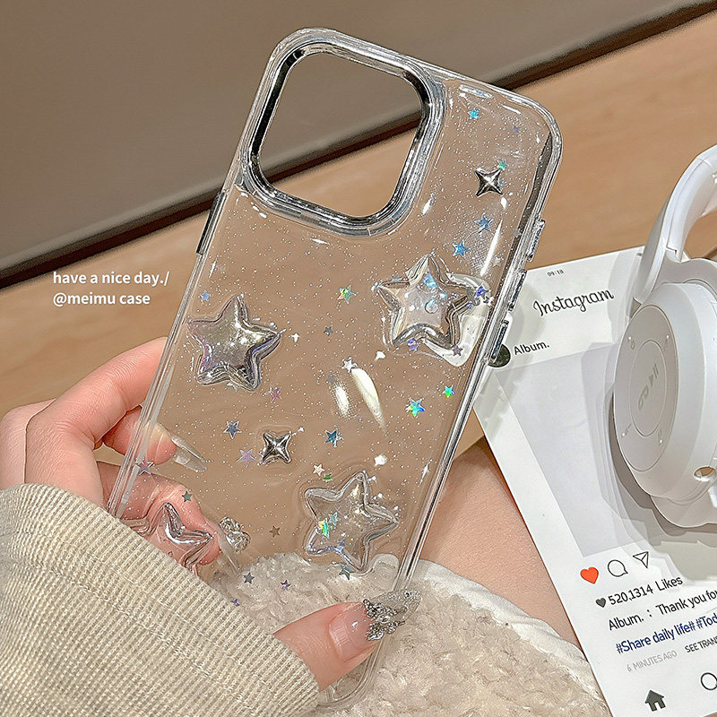 ins梦幻透明闪粉滴胶星星适用苹果手机壳
