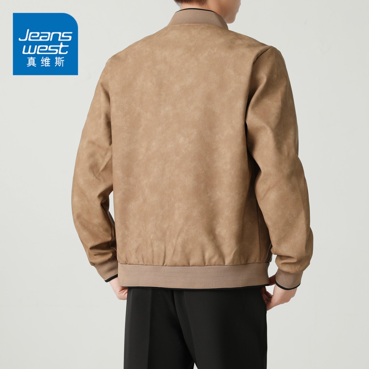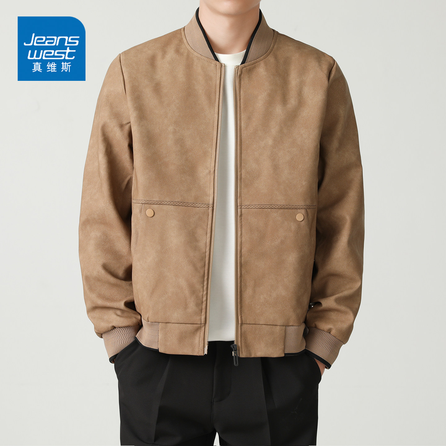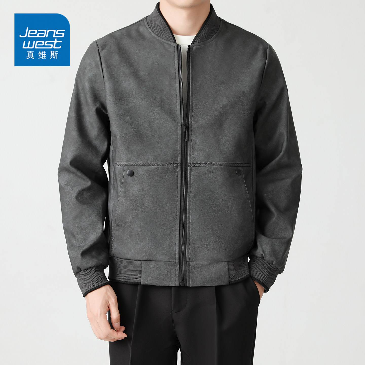 GQ真维斯复古棒球领机车皮衣夹克男士宽松休闲秋冬季痞帅外套上装