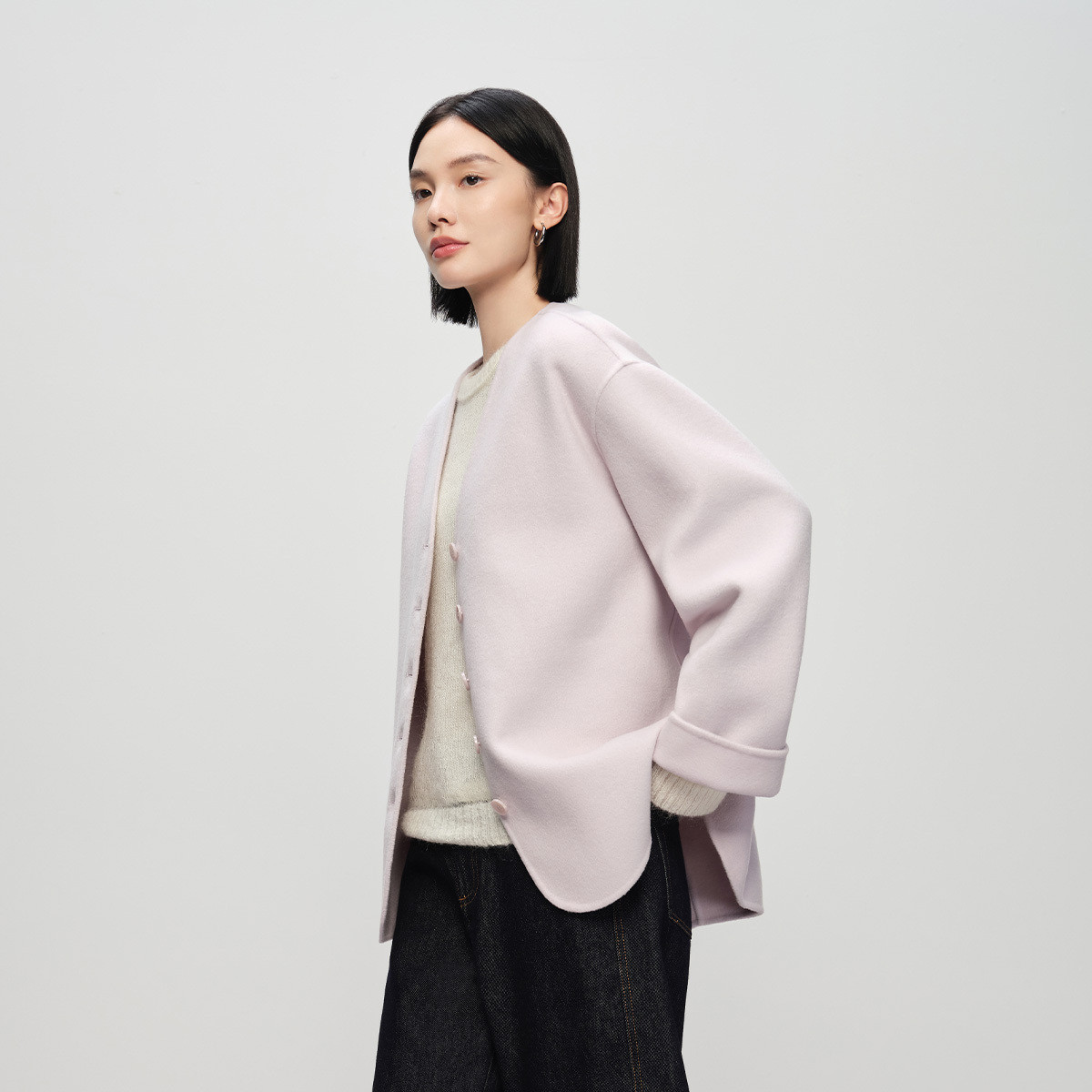 气质双面羊毛大衣女短款2025新款单排扣双面呢圆领小香风毛呢外套