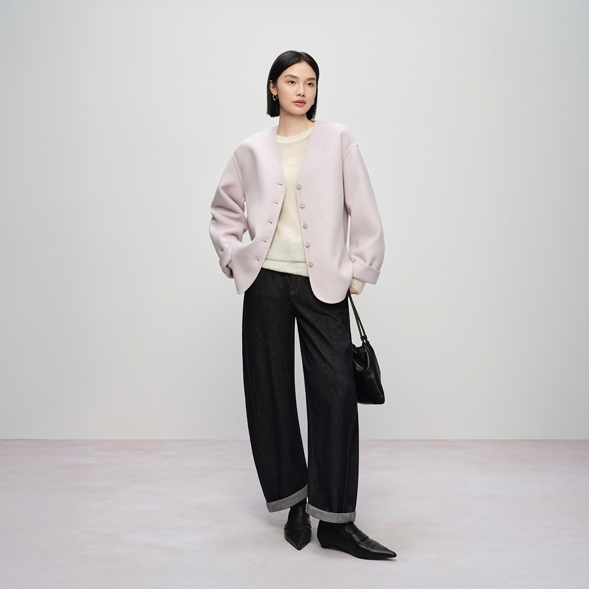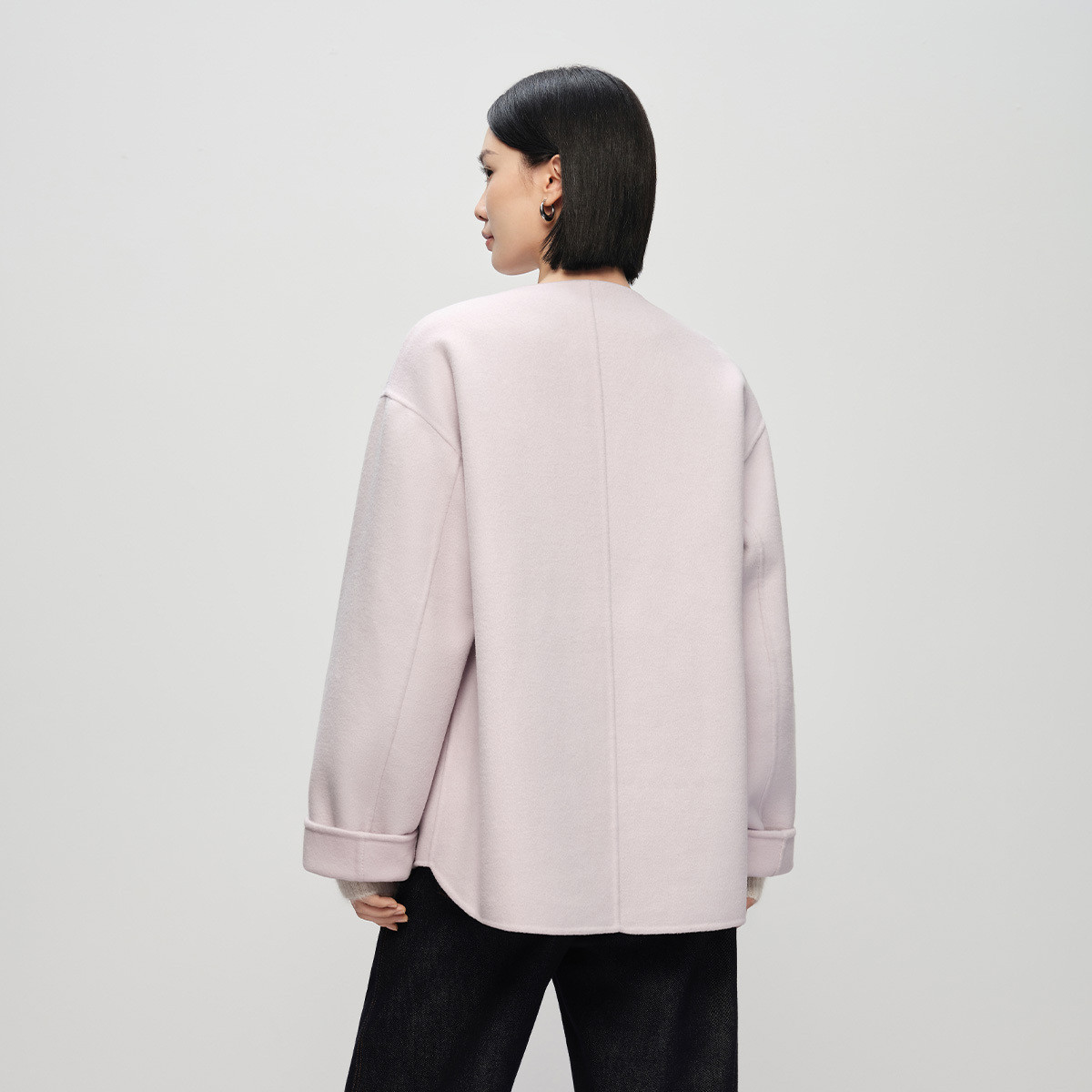 naivee纳薇25冬V领宽松双面呢大衣都市外套紫色