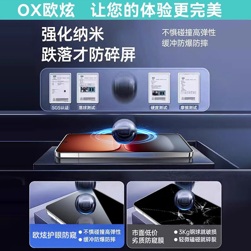欧炫适用iqoo15手机膜爱酷15防窥膜IQOO15钢化膜vivoiqoo13超声波解锁iqoo12全屏覆盖新款12pro保护贴膜全胶