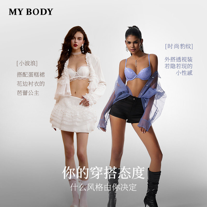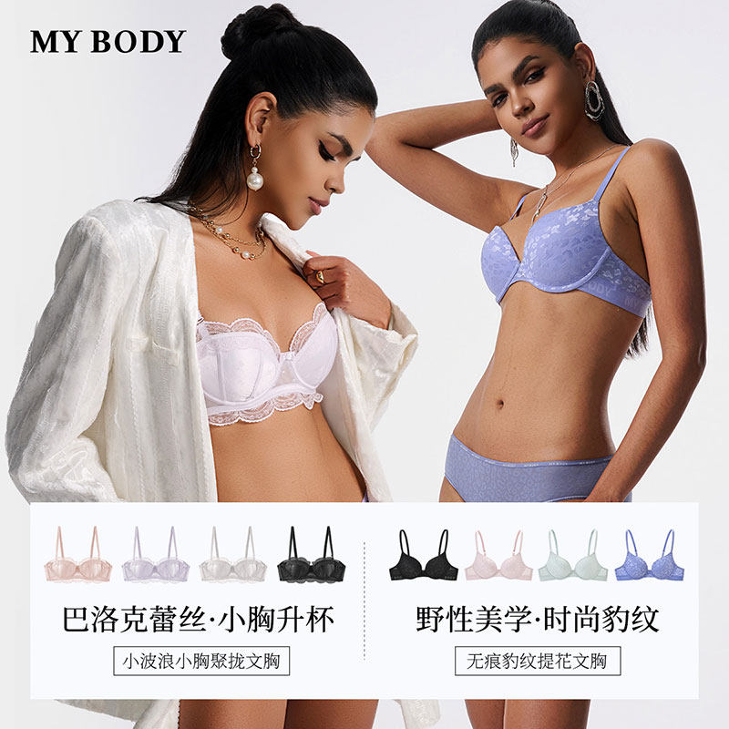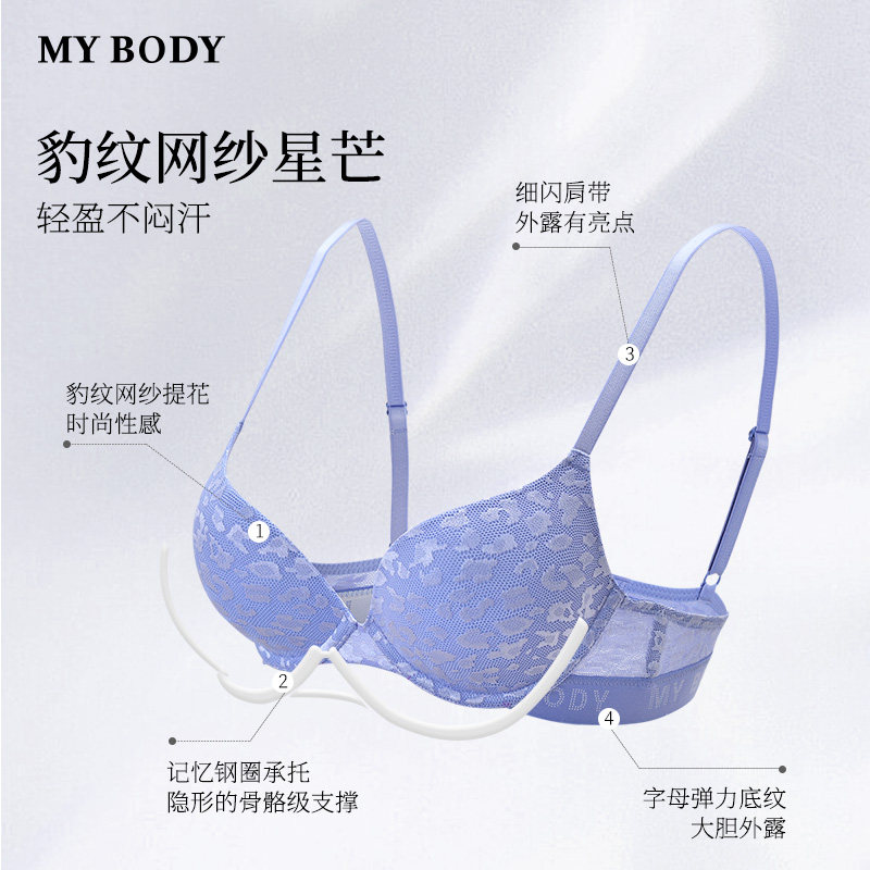 【蜜蜂欢乐社】MYBODY商场同款内衣小胸聚拢网纱提花豹纹文胸胸罩