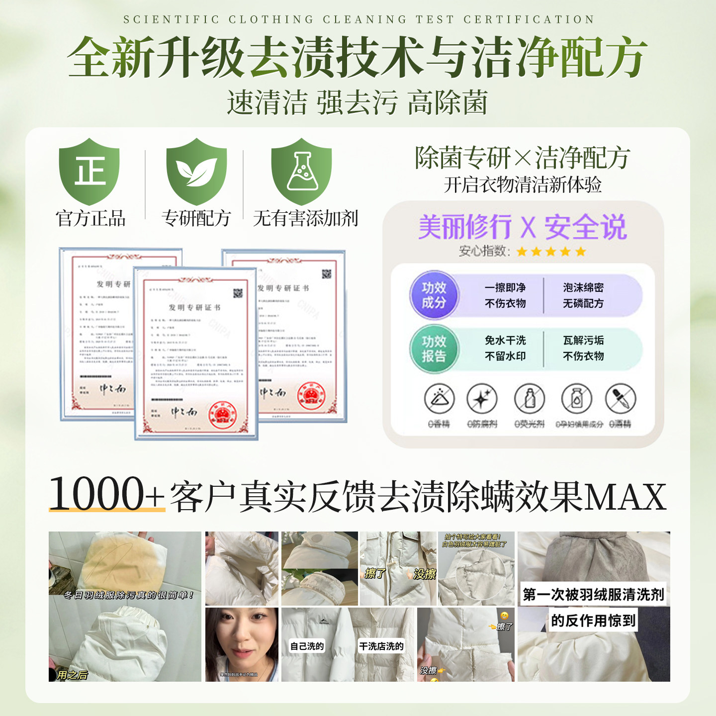 沫檬羽绒服清洗剂免水洗专用白色羽绒服干洗剂去污渍清洁神器蓬松