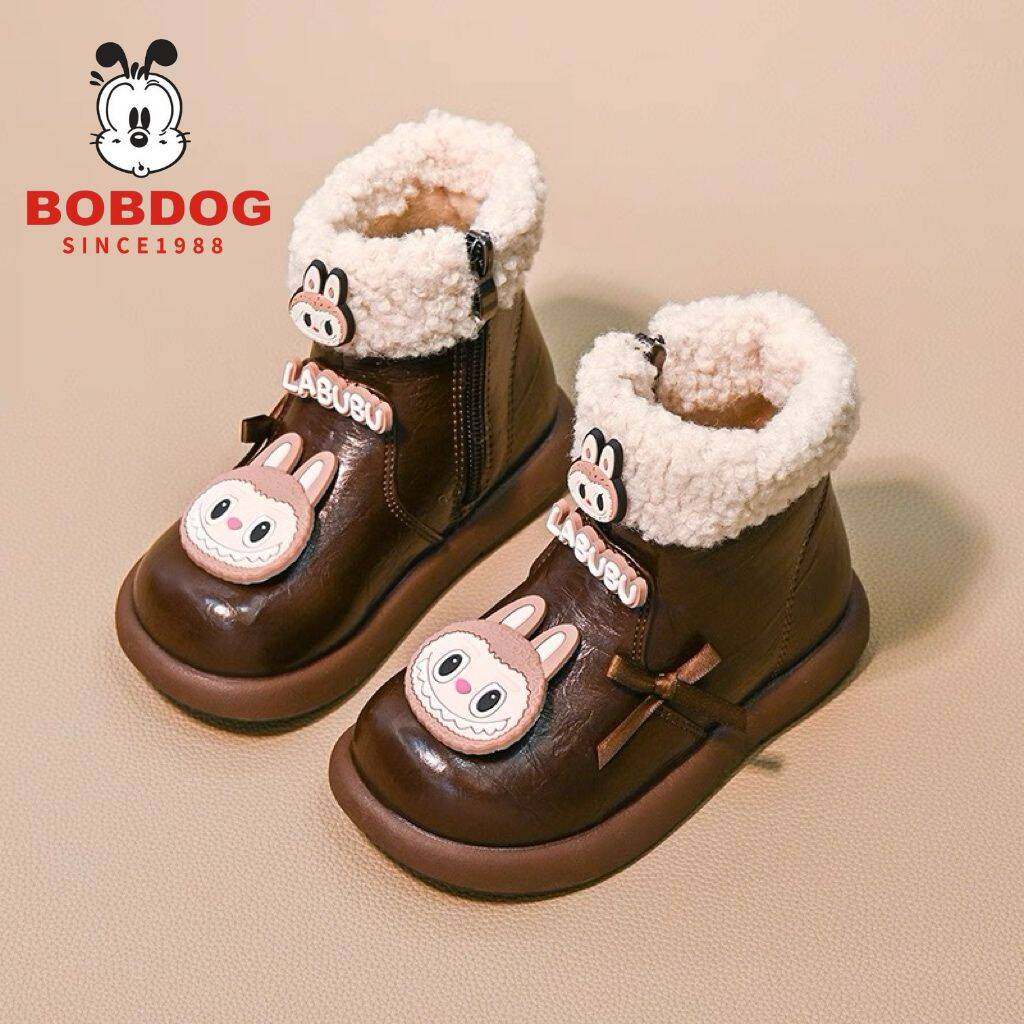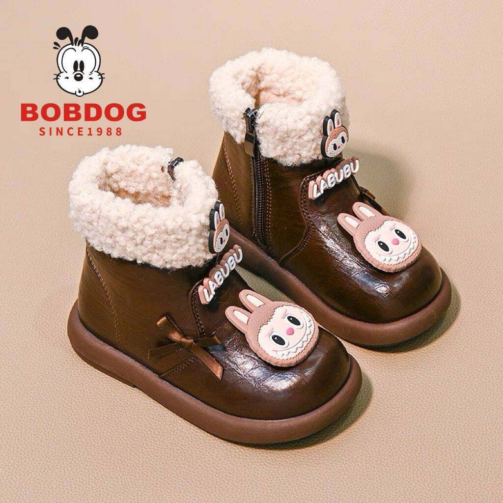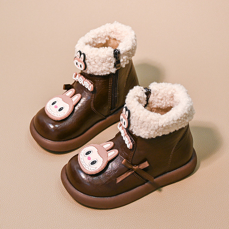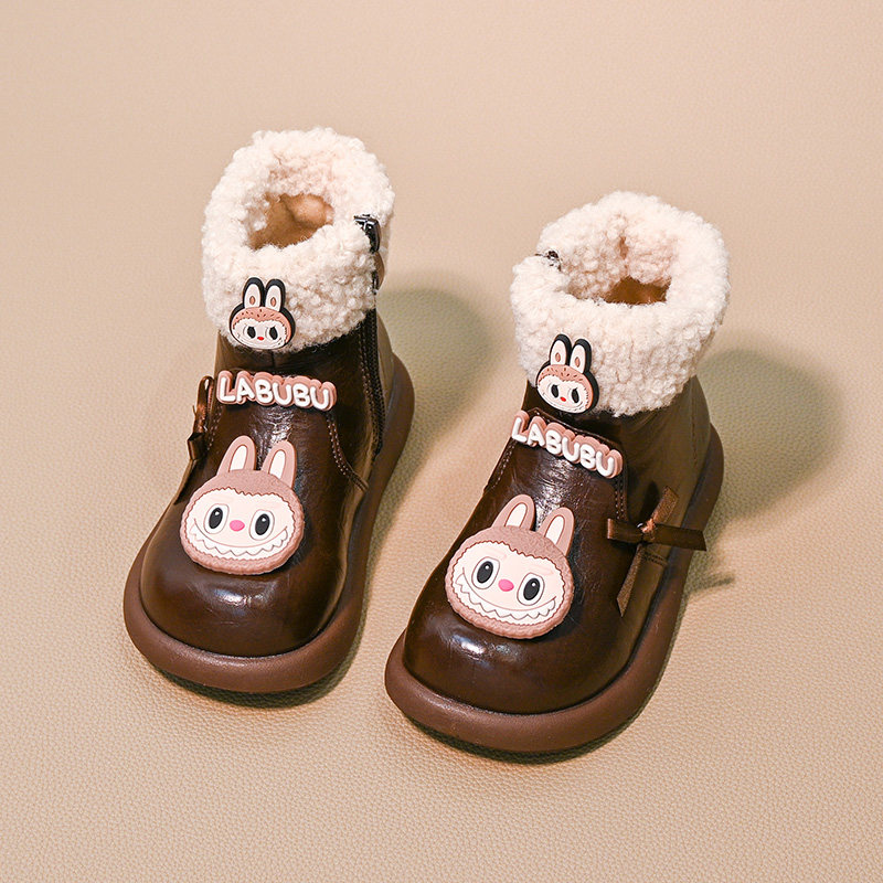 巴布豆女童靴子短靴2025新款冬季儿童卡通皮靴女宝加绒二棉鞋冬款