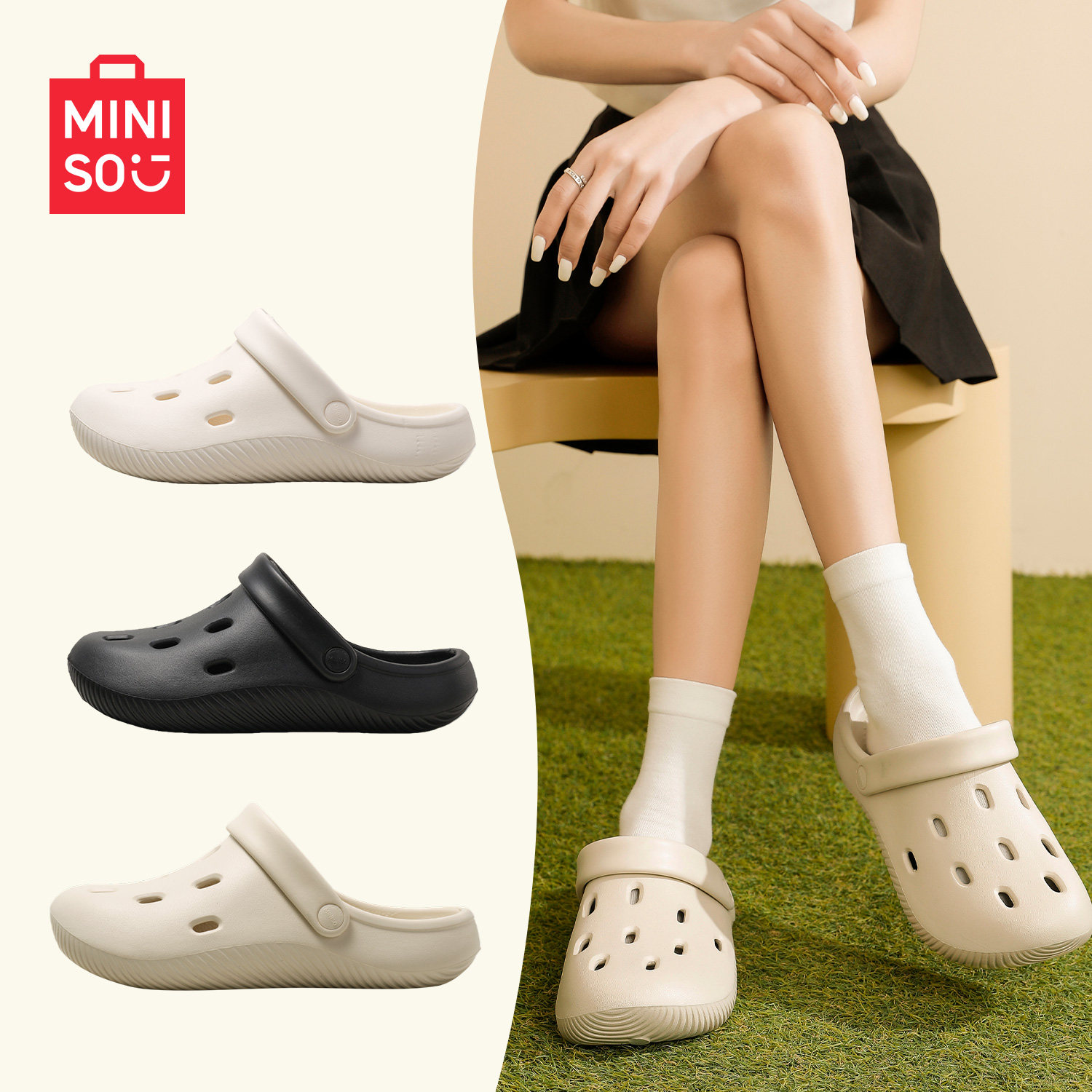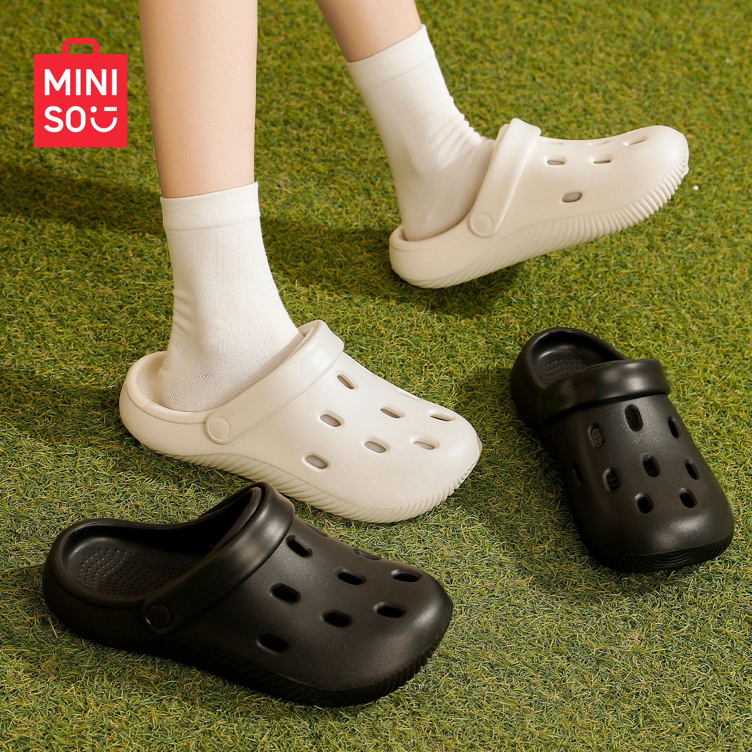 名创优品情侣洞洞鞋夏季踩屎感女凉鞋外穿防滑沙滩软底包头拖鞋男