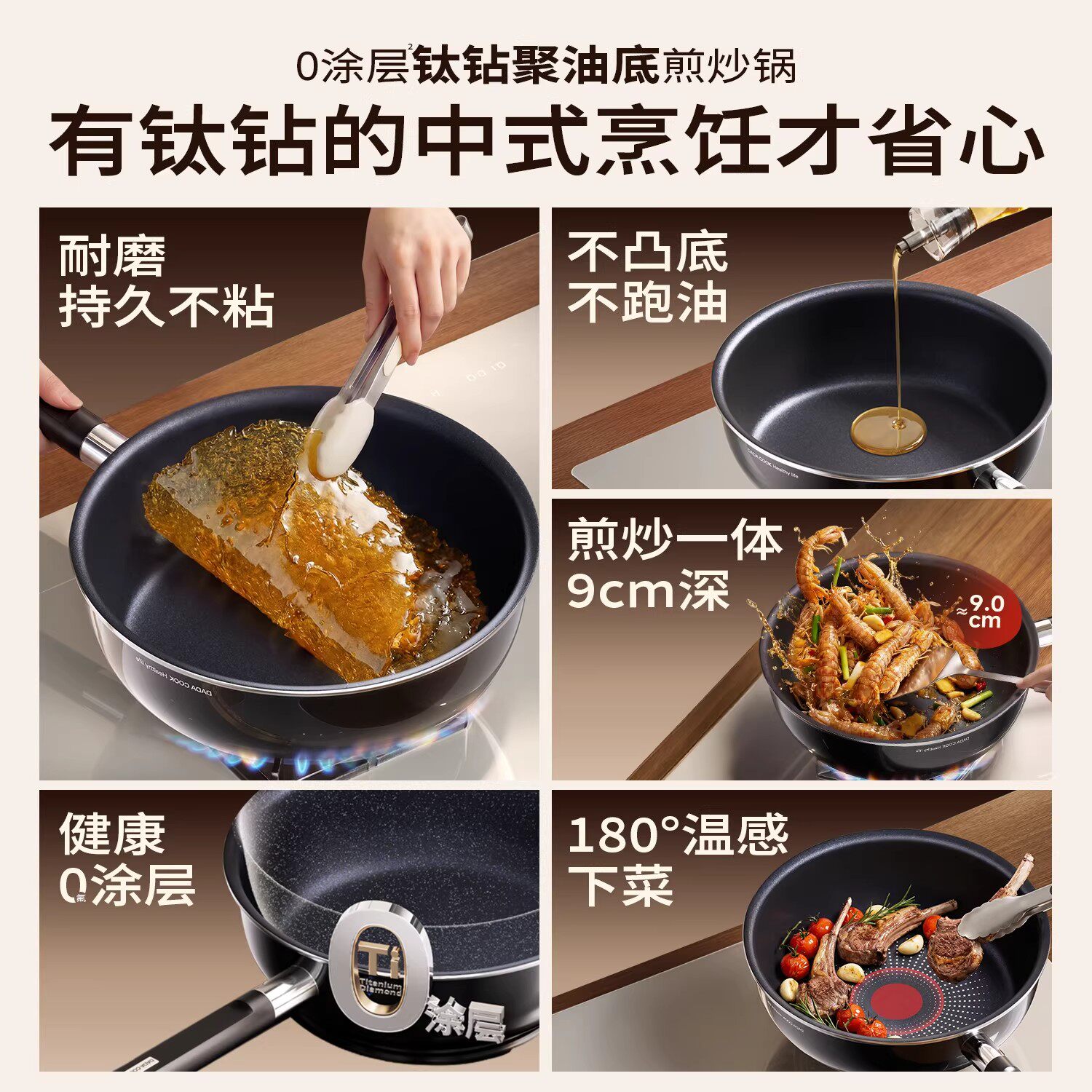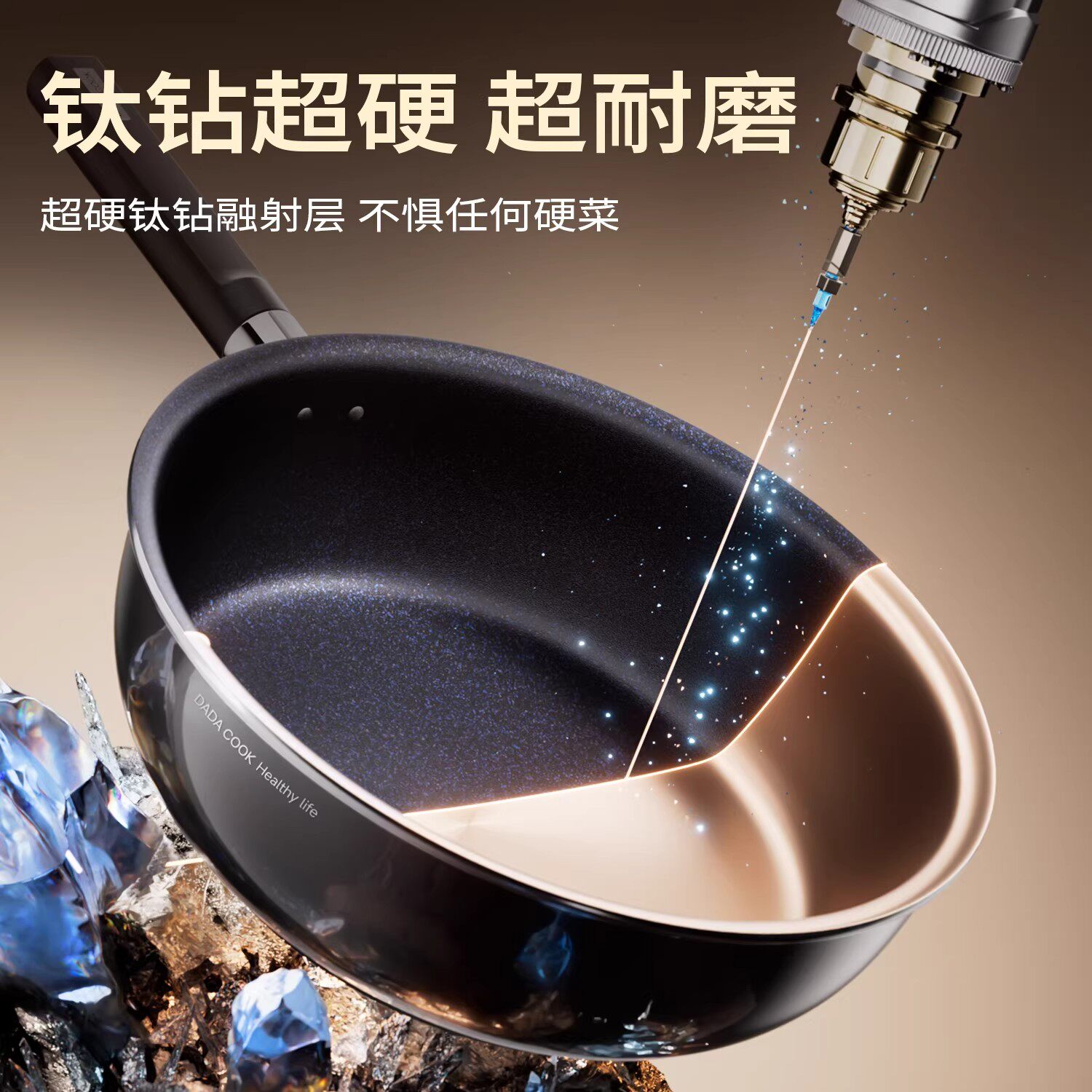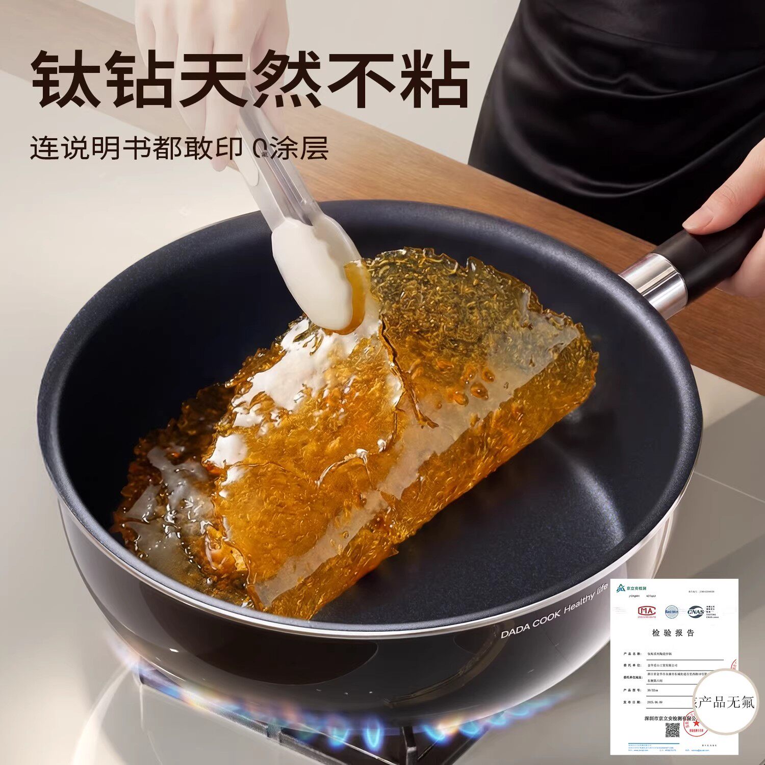 钛钻无涂层平底锅不粘锅深煎锅家用牛排电磁炉专用炒菜达人燃气