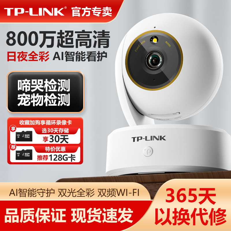 普联TP-LINK无线摄影头800万像素4K极清WIFI6升级360度双云台萌宠检测双向语音全彩夜视监控摄像机TL-IPC48AW