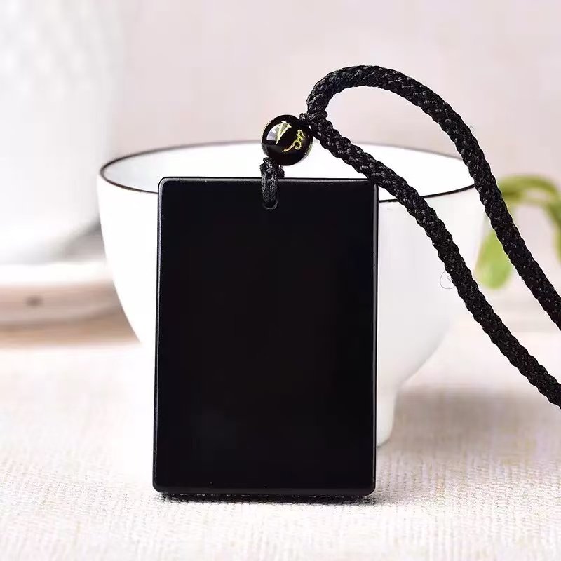 普陀山黑曜石无事牌吊坠女天然护身符项链平安符送男朋友的礼物