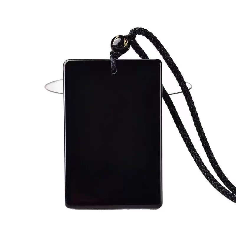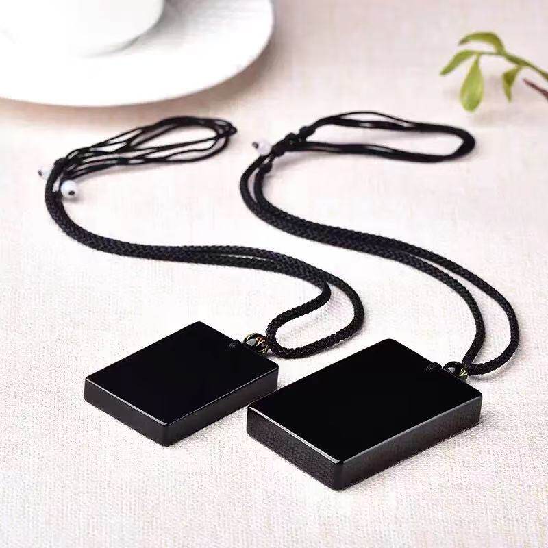 天然黑曜石平安无事牌吊坠男女士同款百搭挂绳项链毛衣链保真现货
