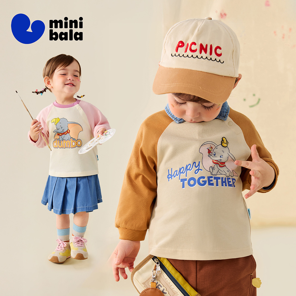 [小飞象IP]迷你巴拉巴拉男女宝宝T恤儿童长袖卫衣纯棉春新品