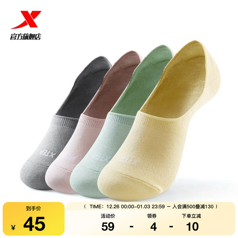 4双装特步抗菌女士隐形船袜2025年秋季户外徒步速干薄款登山袜子