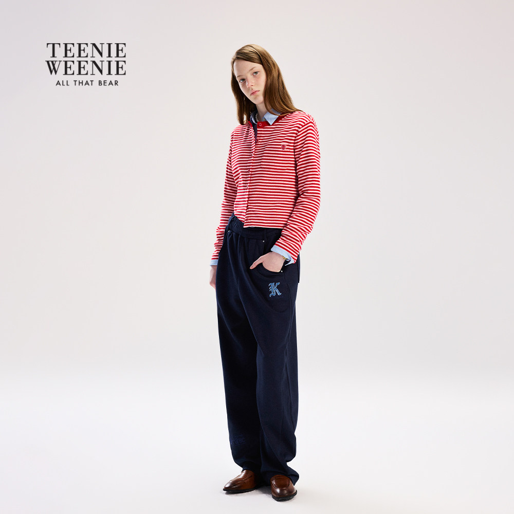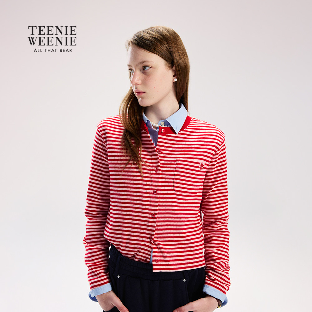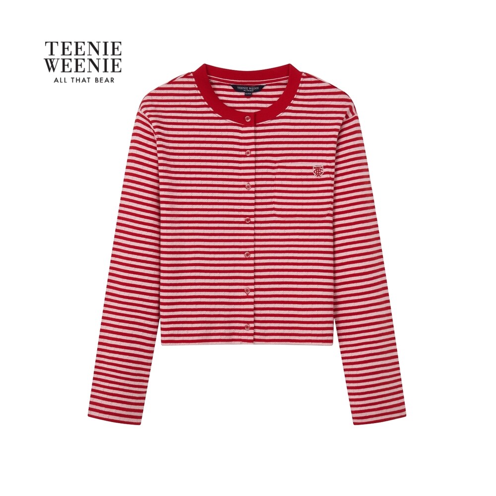 TeenieWeenie小熊女装T恤26春新款休闲活力红白条纹长袖圆领上衣