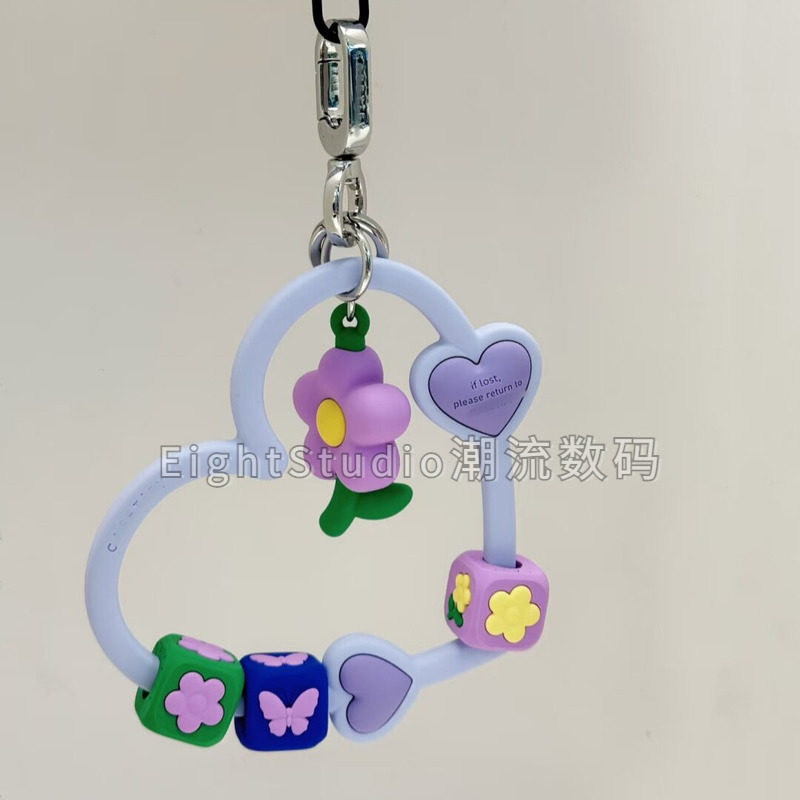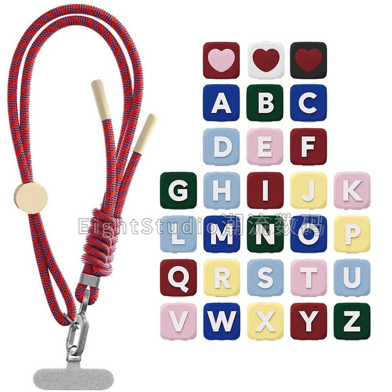 【新品-C原版字母串珠挂饰】硅胶爱心腕带短链手机壳链条挂绳防丢