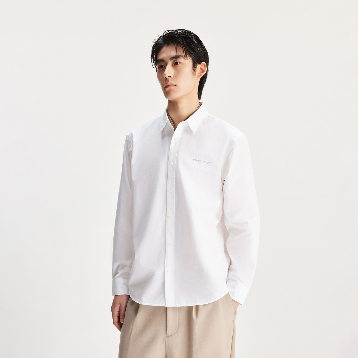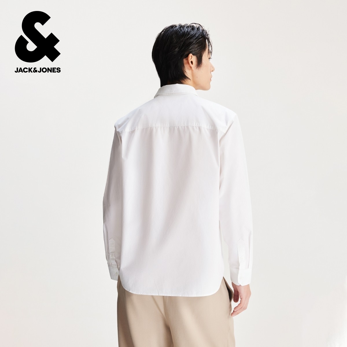 杰克琼斯男装秋季新款字母刺绣纯棉舒适宽松日常休闲翻领长袖衬衫