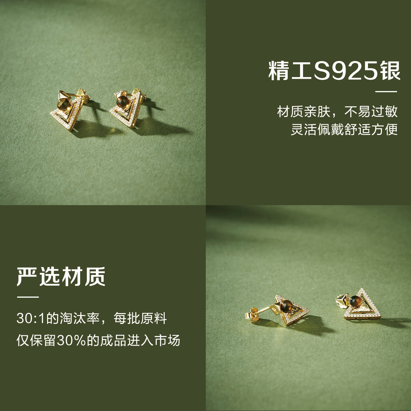菱形紫色水晶耳钉纯银针精致百搭显气质耳环日韩小众设计几何耳饰