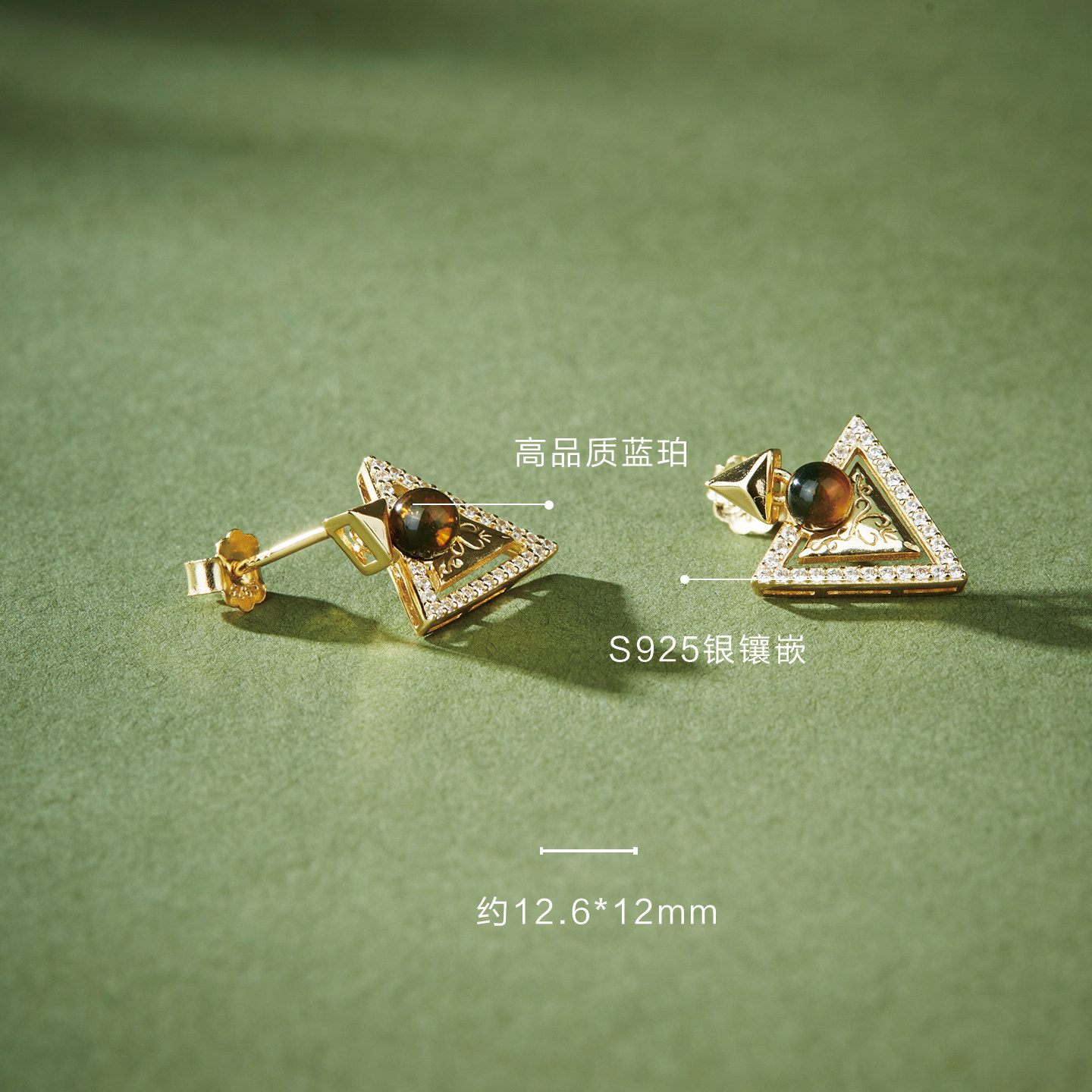 七彩云南蓝珀耳环净水琥珀耳钉天然宝石耳饰纯银耳坠高级感送礼物